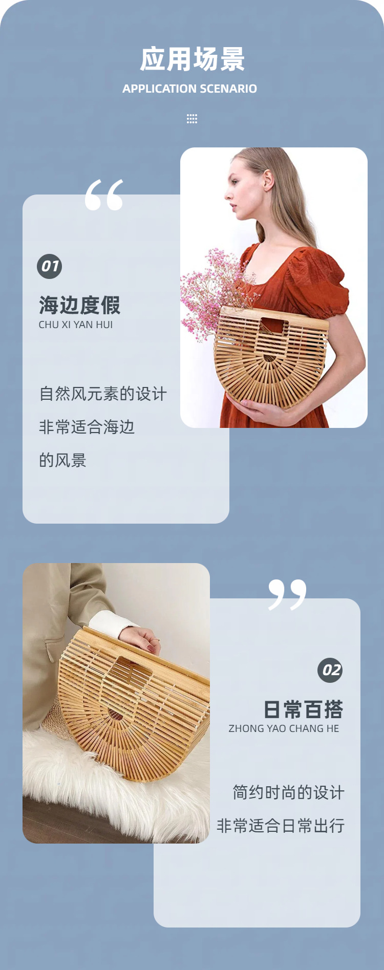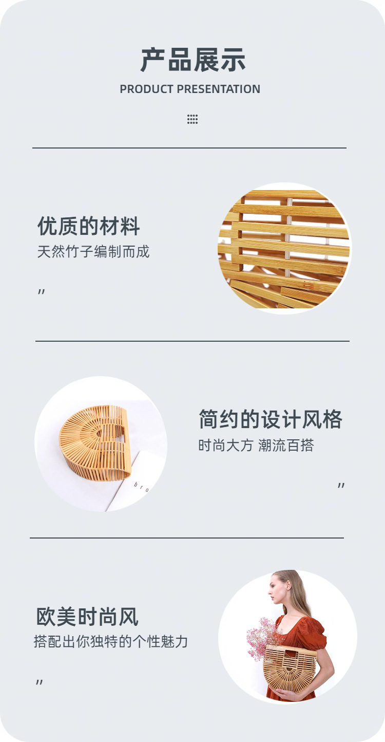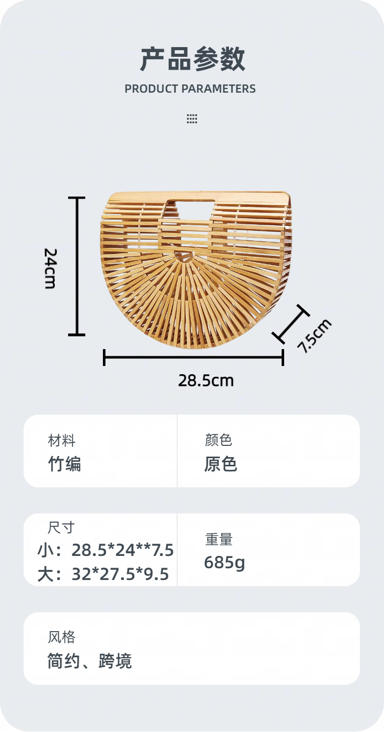 热销手工竹节编织女手拿包半圆度假竹编包户外沙滩欧美竹编手提包
