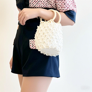 现货速发爆款手提包都市简约纯色手拎包欧美时尚镂空女士编织包