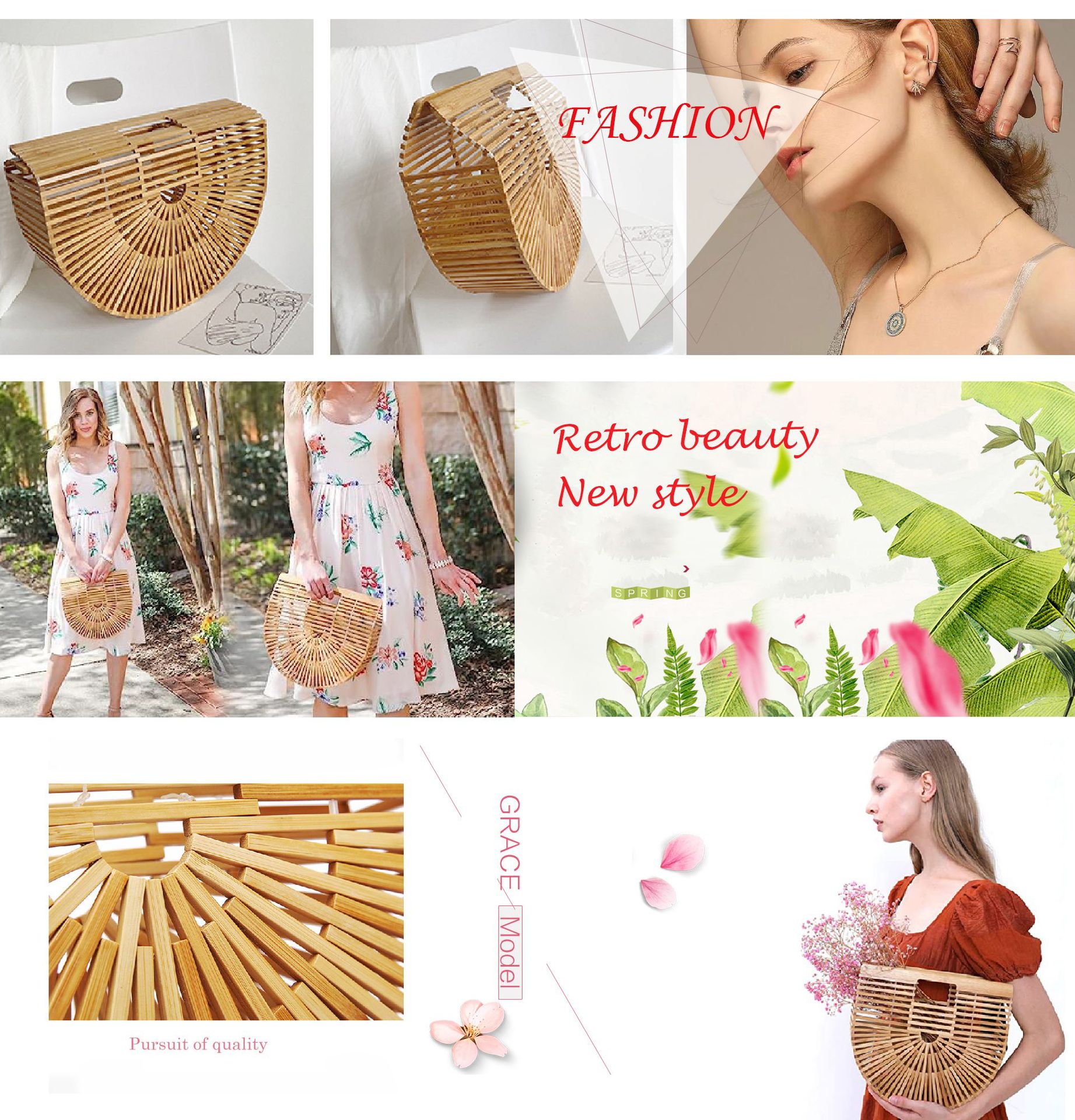 국경 간 인기 판매 수제 대나무 가방 반원형 휴가 해변 여성 클러치 백 고급 대나무 핸드백