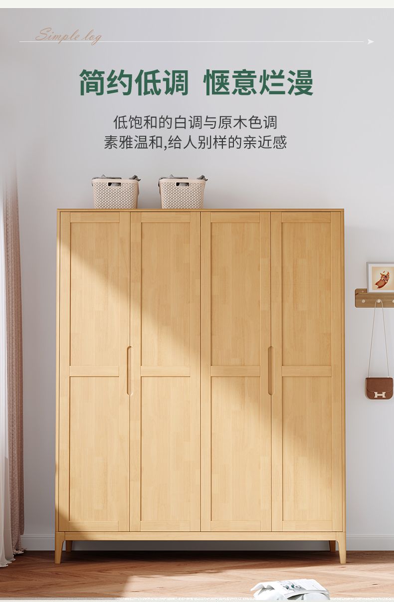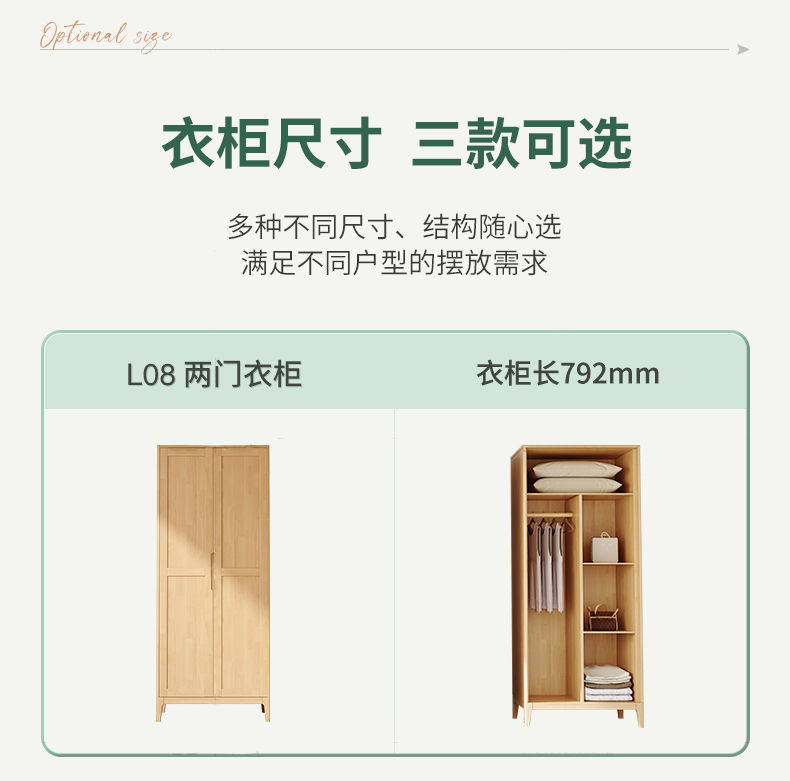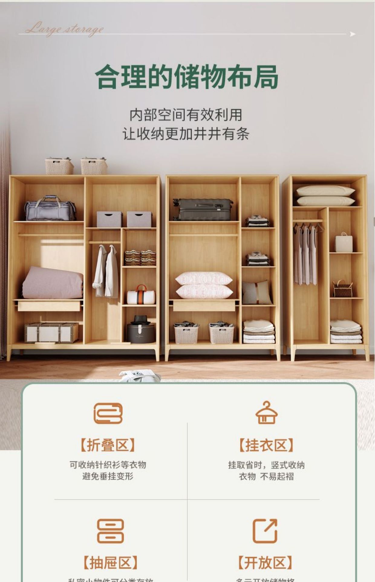 북유럽 단단한 나무 옷장 일본식 조립 보관 캐비닛 홈 옷장 침실 B & B 가구 2 도어 로그 옷장스토어 가기
