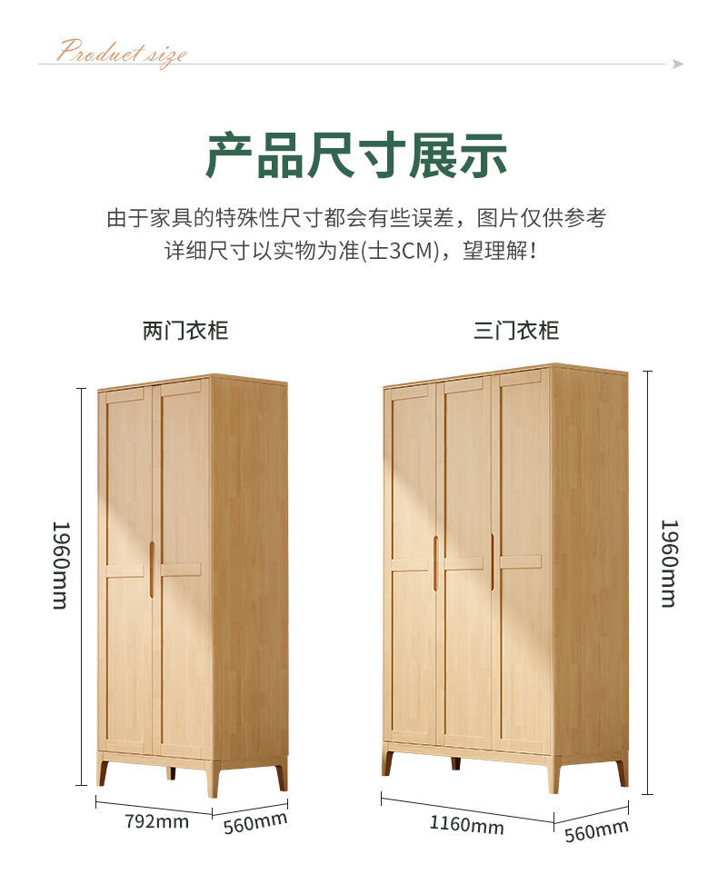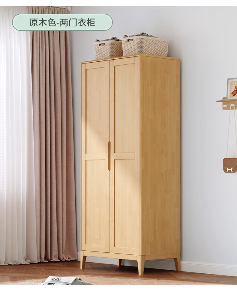 북유럽 단단한 나무 옷장 일본식 조립 보관 캐비닛 홈 옷장 침실 B & B 가구 2 도어 로그 옷장