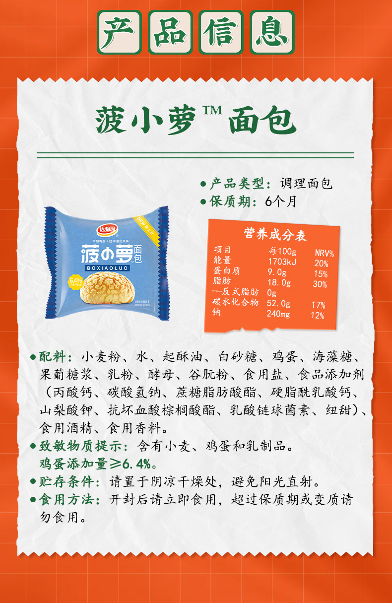 [달리위안 파인애플빵 180g] 파인애플빵 페이스트리 아침 캐주얼 스낵 스낵 식품 스낵 도매