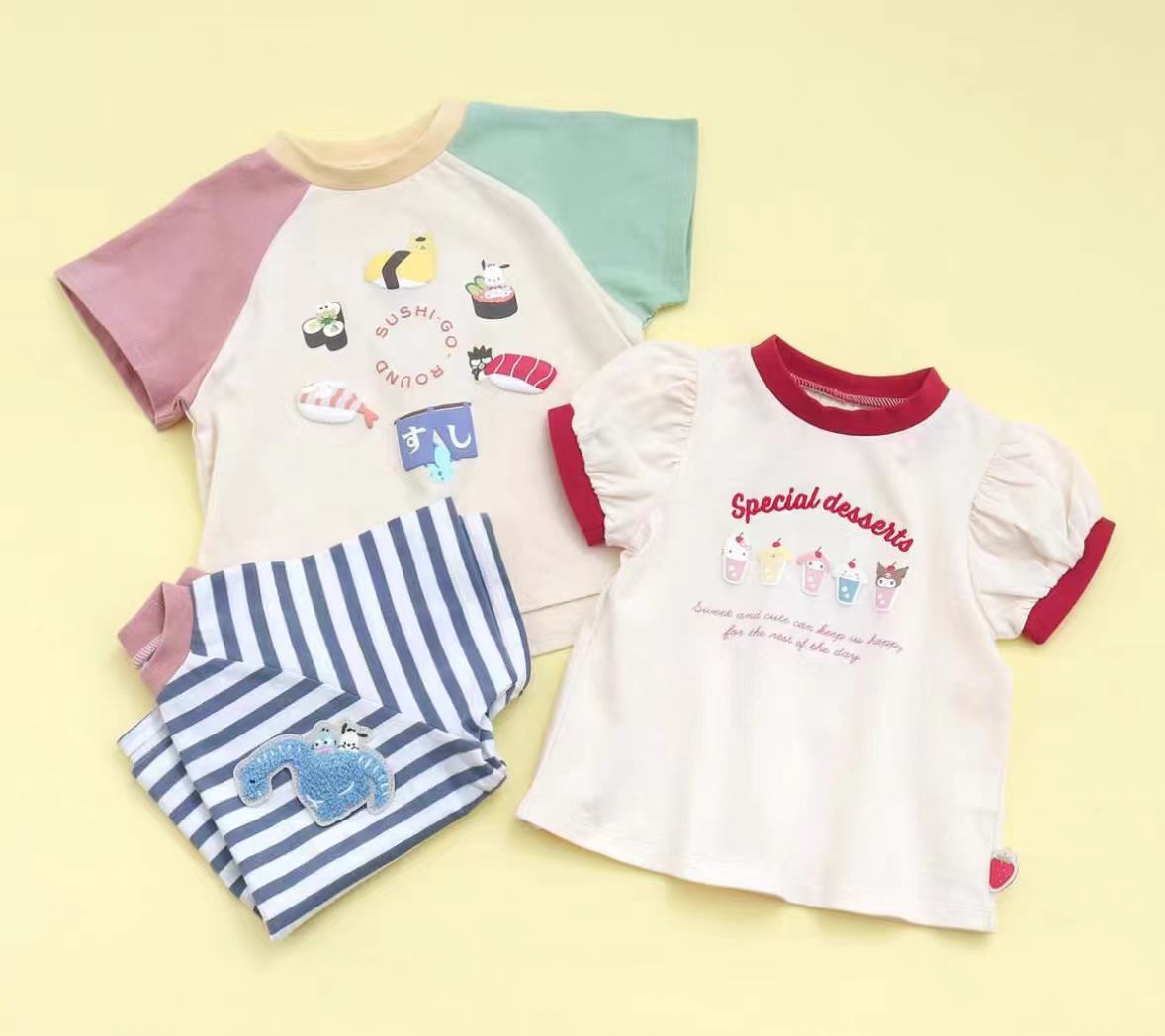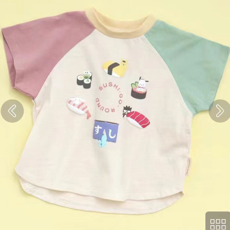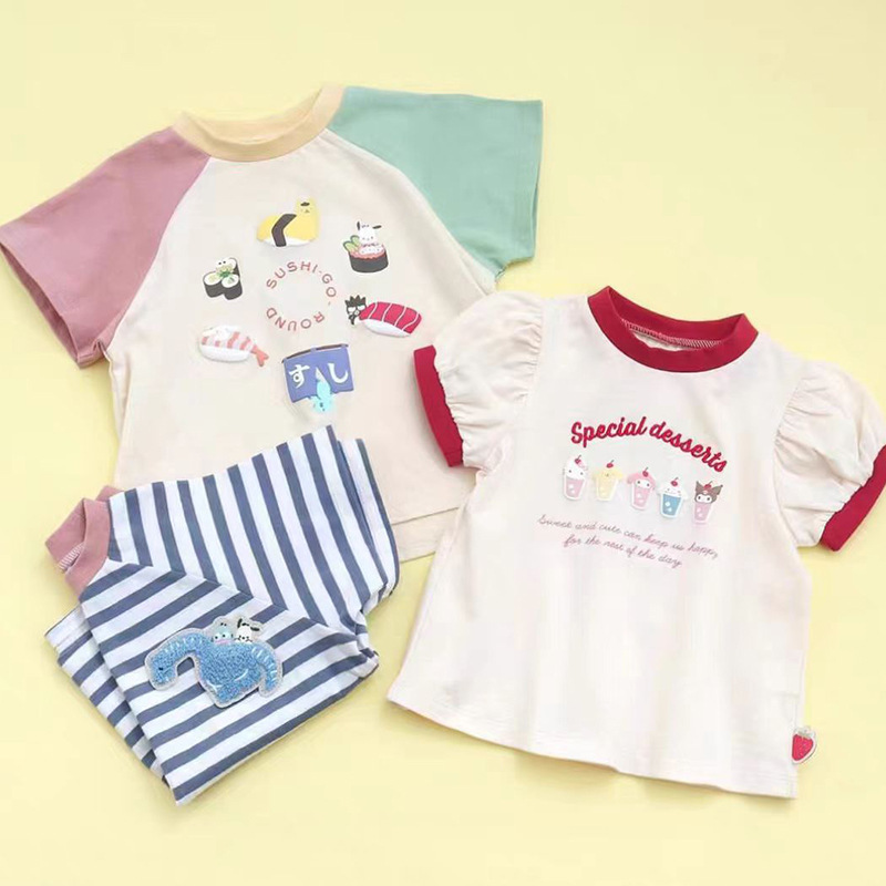 2024 봄과 여름 아동복 아이스크림 초밥 공룡 여름 남녀 아기 반팔 T