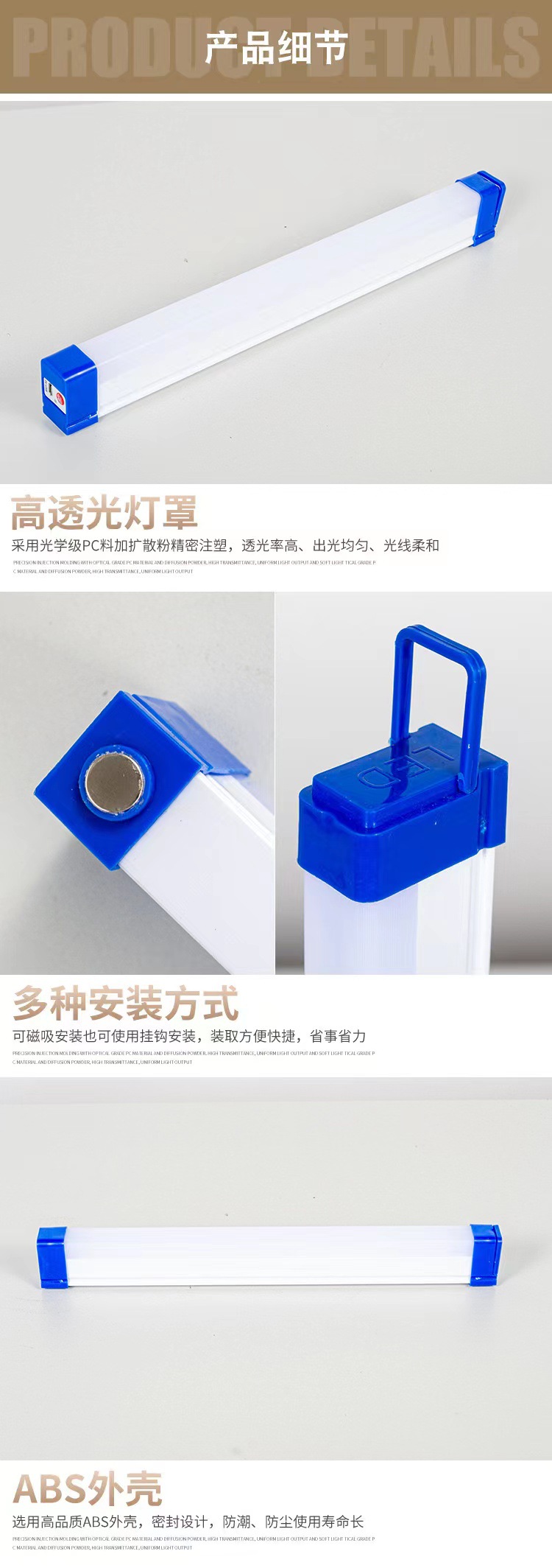 LED 충전식 비상등, 캠핑용 긴 조명등, 자석 부착형 걸이식 비상등, 다기능 조명 작업등스토어 가기