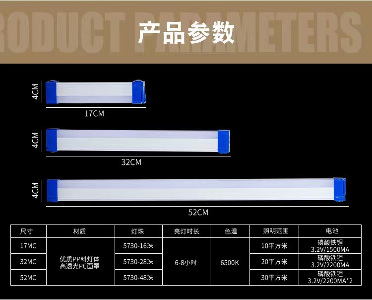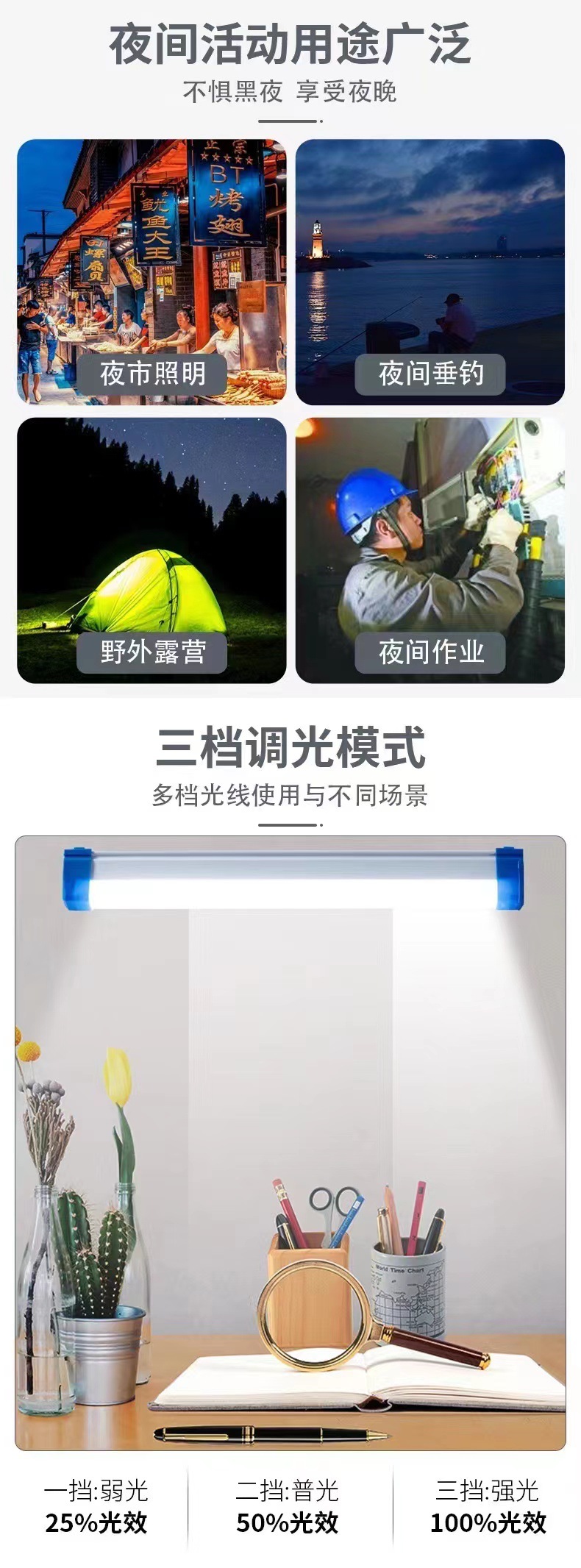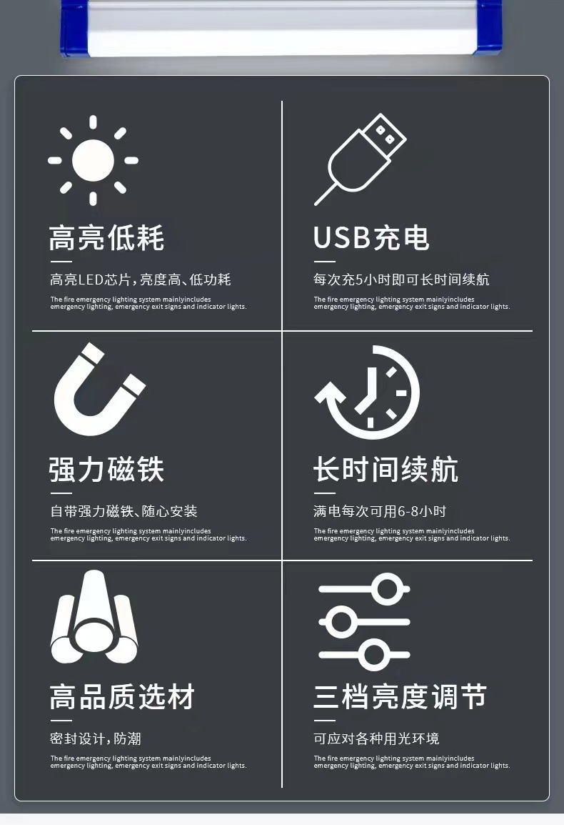 LED 충전식 비상등, 캠핑용 긴 조명등, 자석 부착형 걸이식 비상등, 다기능 조명 작업등