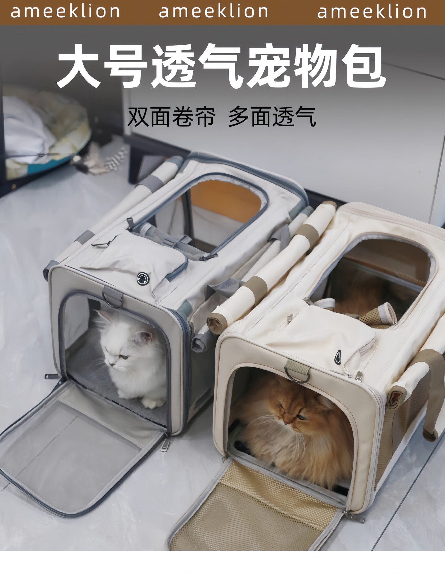 고양이 가방은 대용량 고양이와 개 케이지가있는 휴대용 대형 통기성 애완 동물 가방 두 마리를 넣을 수 있습니다.