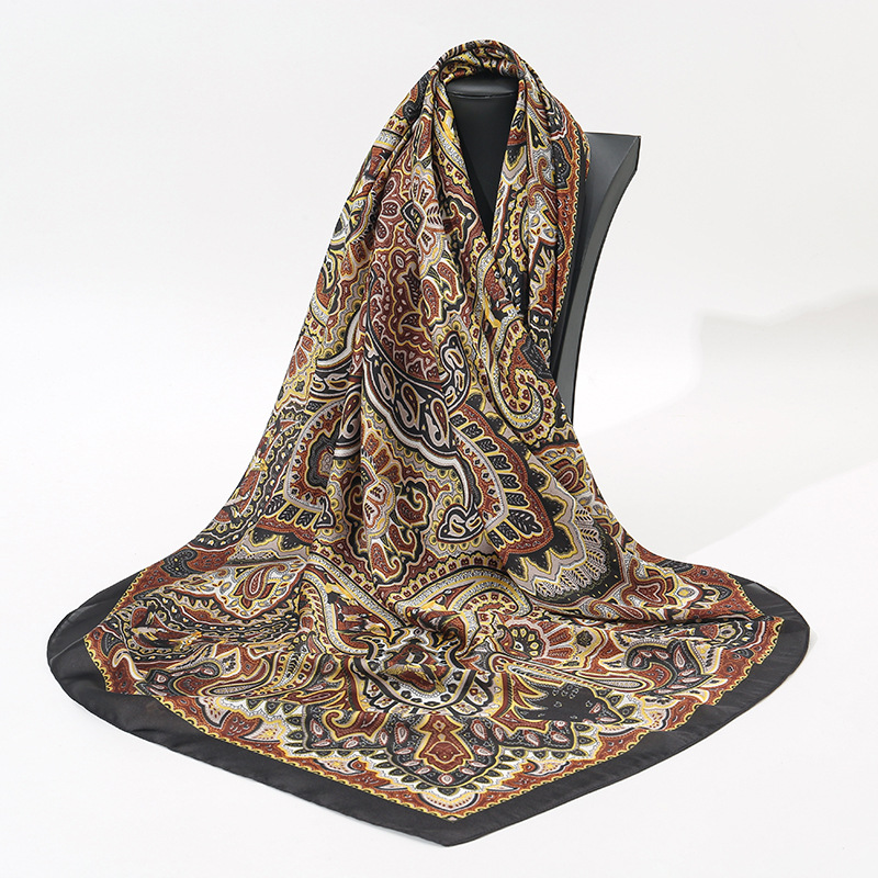 간단한 올 매치 봄과 여름 에어컨 룸 넥 보호 얇은 목도리 시뮬레이션 실리 브로케이드 110cm 사각형 스카프 장식 포장 가슴