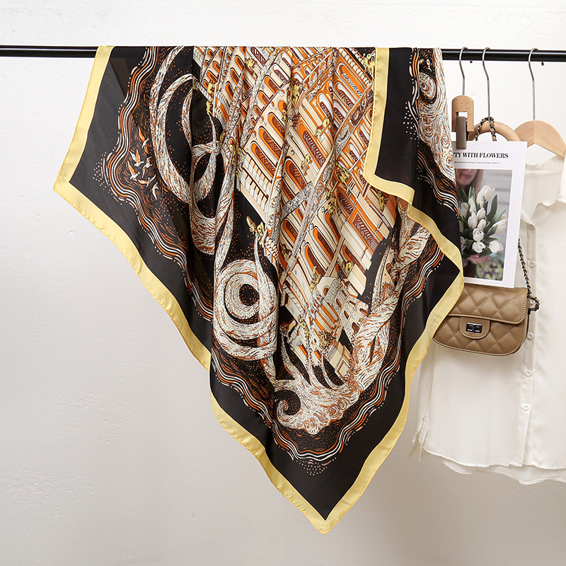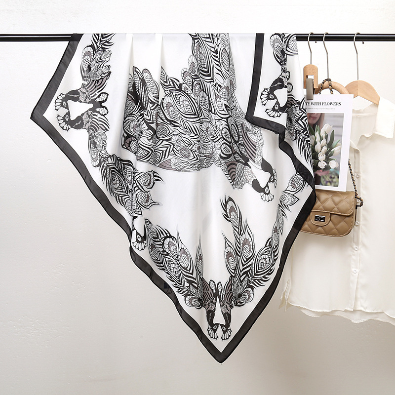 간단한 올 매치 봄과 여름 에어컨 룸 넥 보호 얇은 목도리 시뮬레이션 실리 브로케이드 110cm 사각형 스카프 장식 포장 가슴스토어 가기