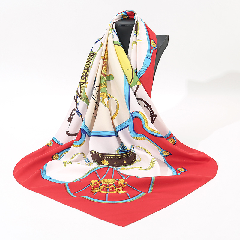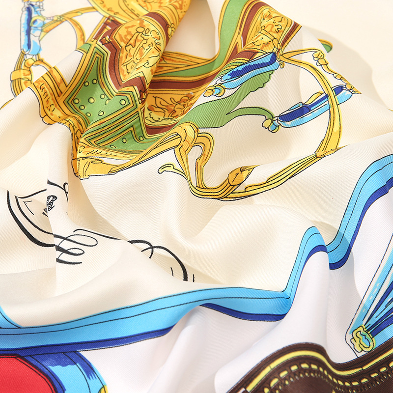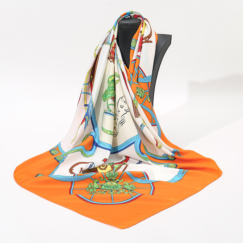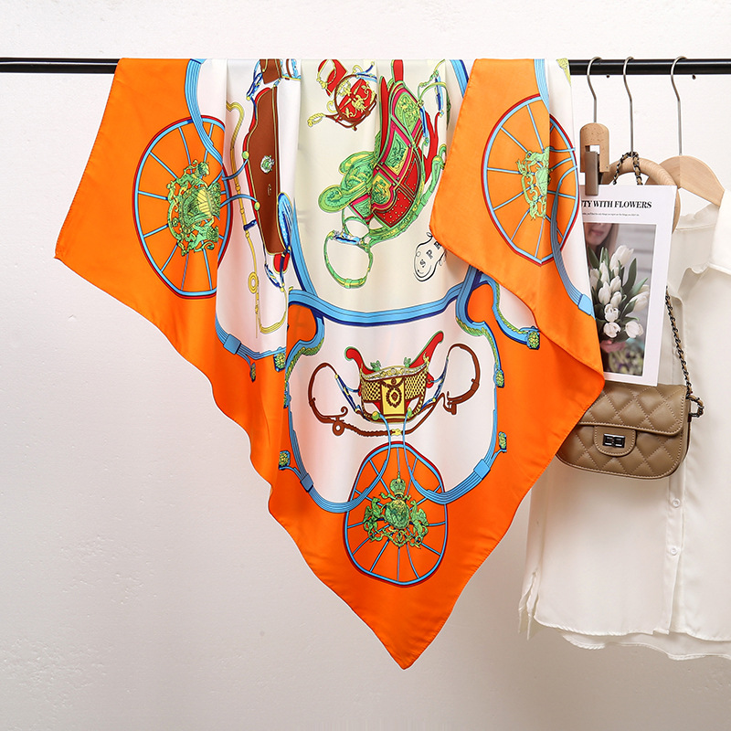 유럽과 미국의 패션 호박 마차 트윌 프린트 스카프 100cm 큰 사각형 스카프 대외 무역 여성 장식용 목도리 스카프