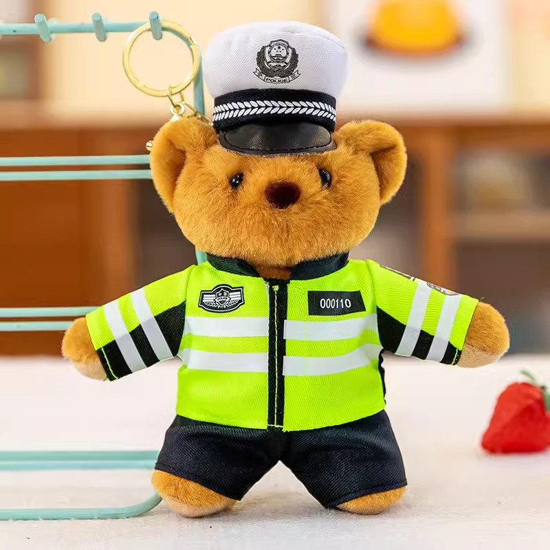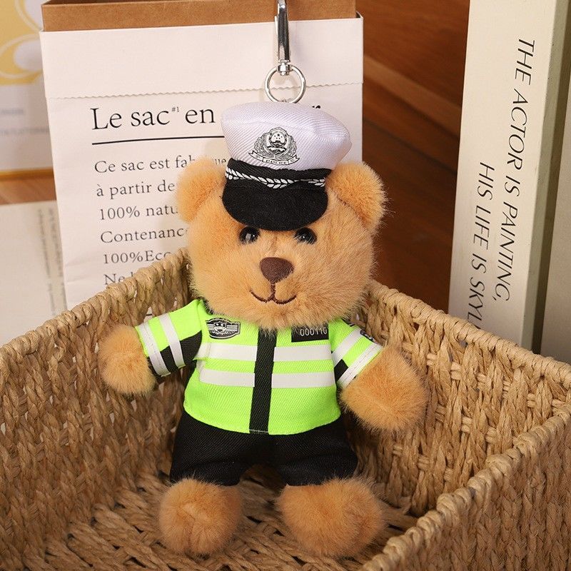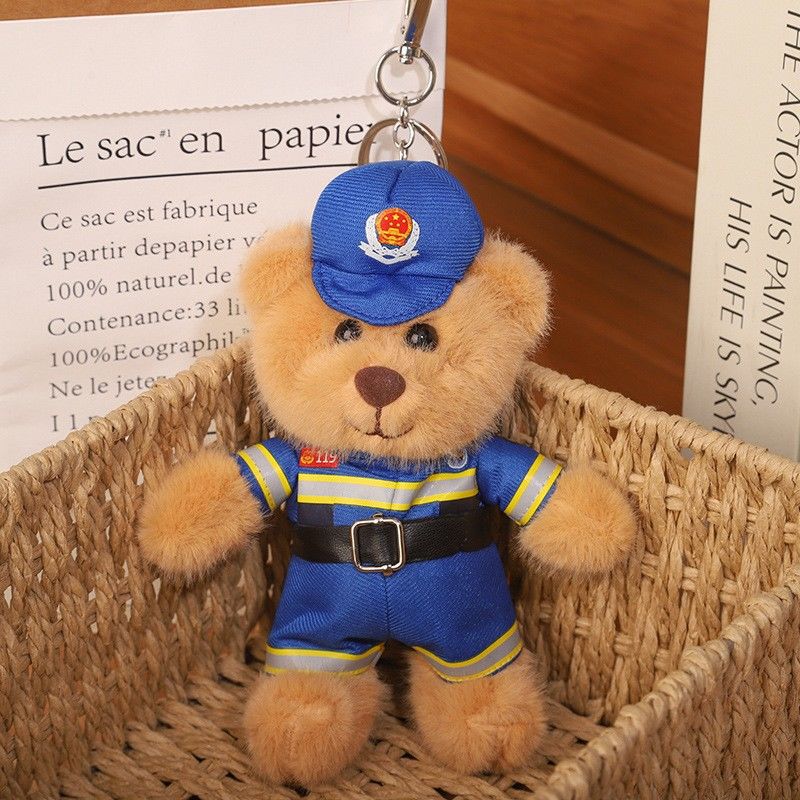 푸른 하늘 구조 팀 경찰 화재 곰 펜던트 인형 교통 경찰 인형 봉제 장난감 가방 액세서리 키 체인스토어 가기