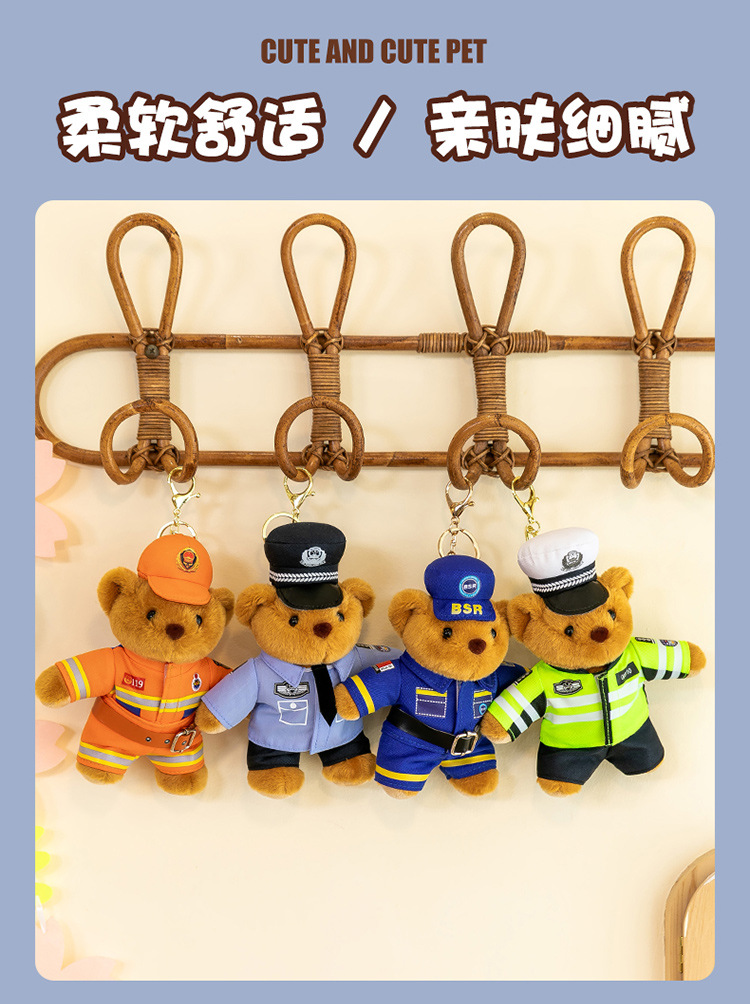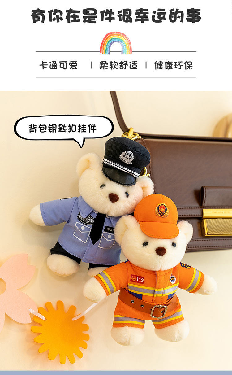 푸른 하늘 구조 팀 경찰 화재 곰 펜던트 인형 교통 경찰 인형 봉제 장난감 가방 액세서리 키 체인