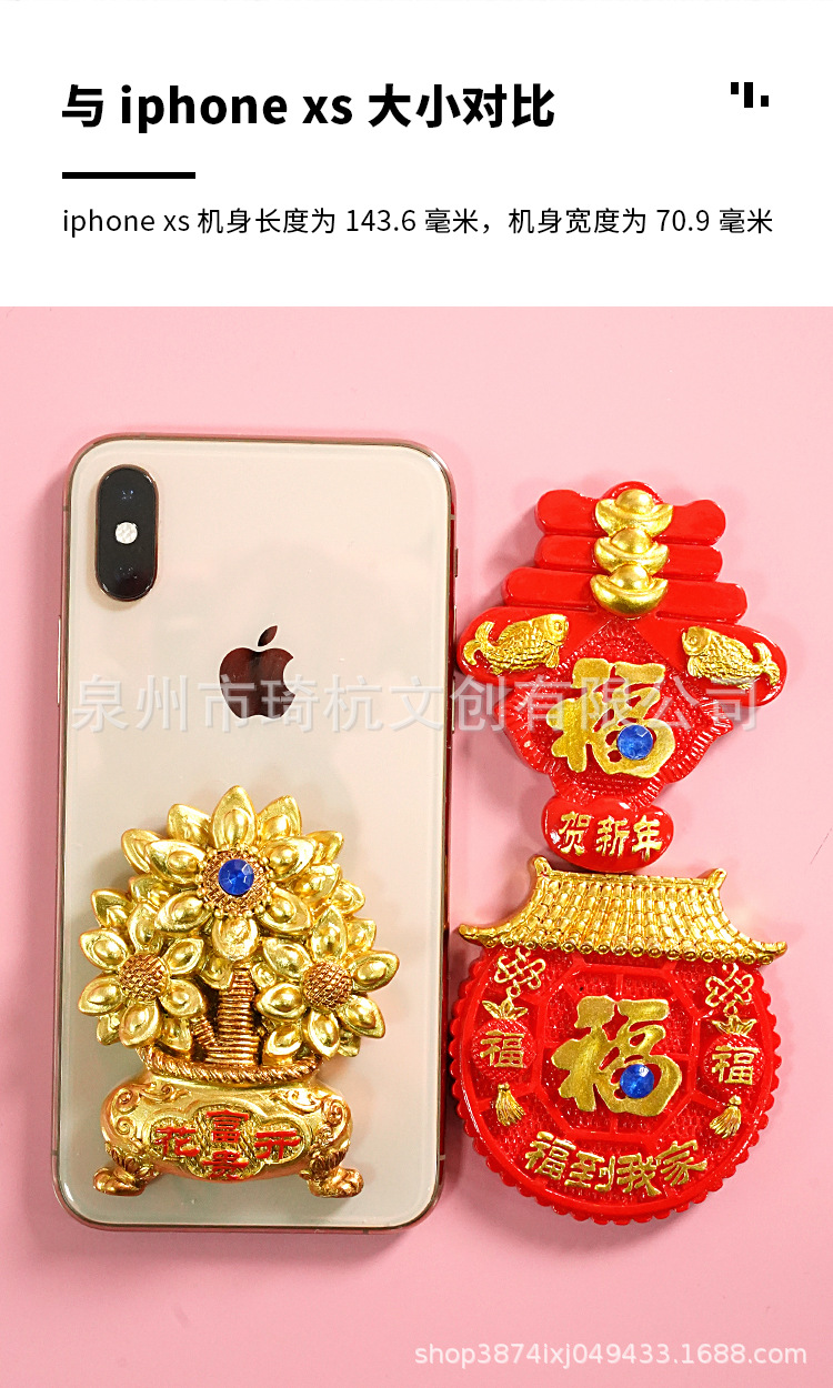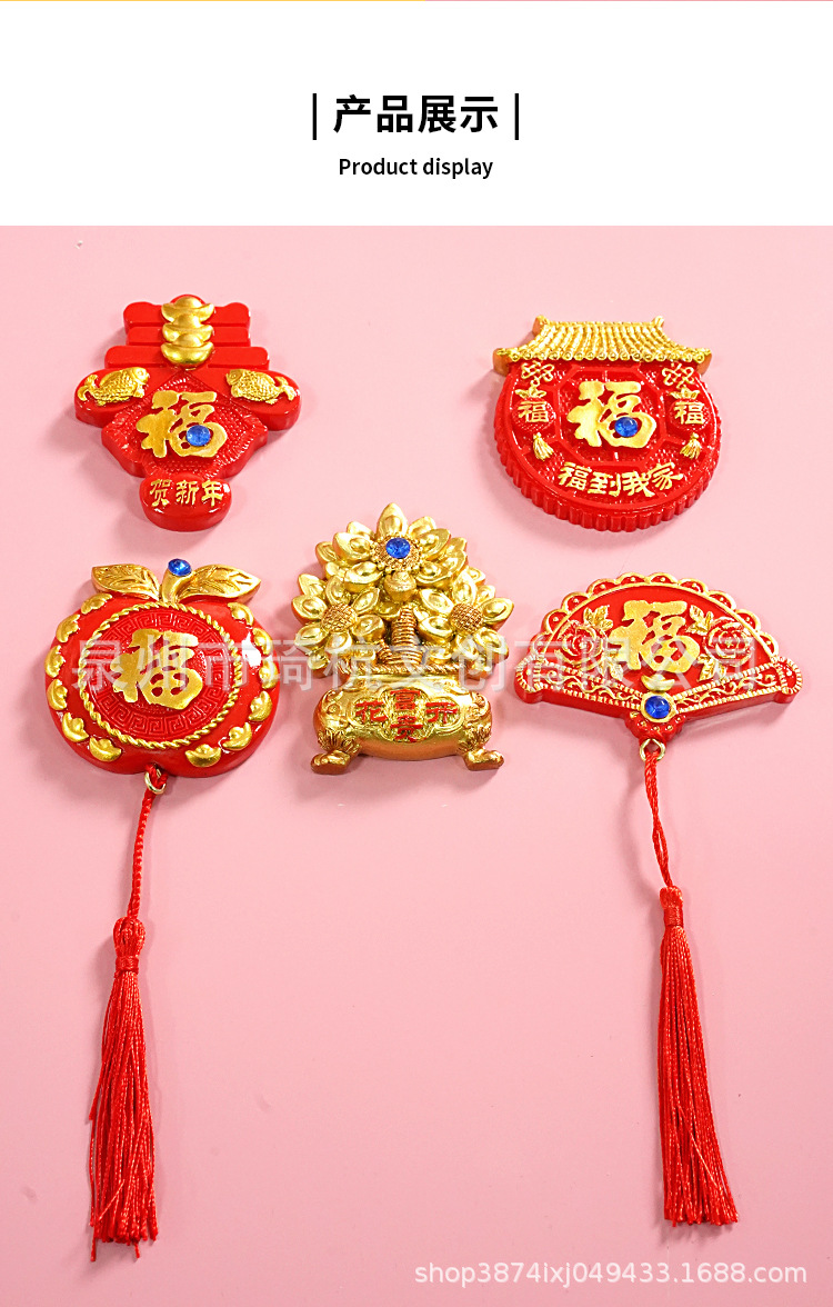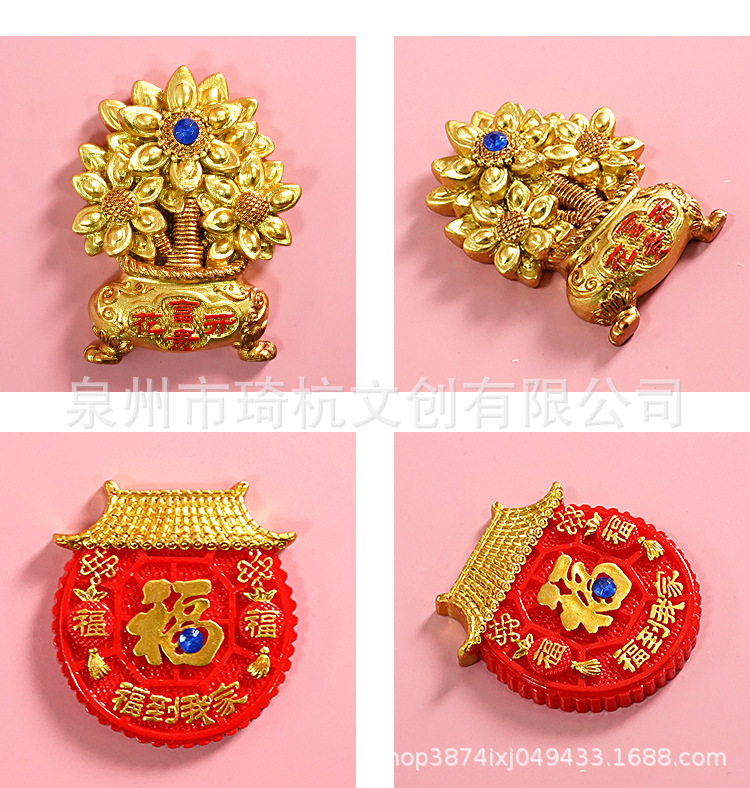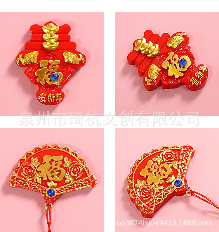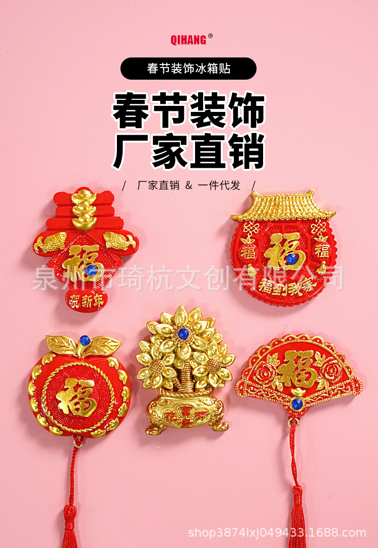 새해 축제 냉장고 스티커 장식 새해 축하 음식과 놀이 가방 행운의 나무 피는 풍부한 평화는 창조적 인 음식과 놀이를 축복합니다스토어 가기