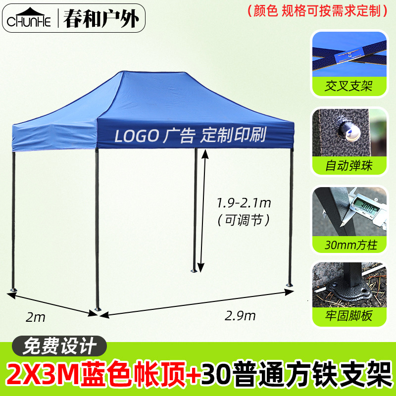 • 2* 3m 블랙 스퀘어 아이언 블루 탑 텐트