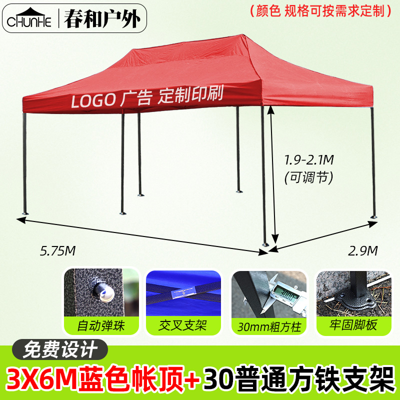 • 3* 6m 블랙 스퀘어 아이언 레드 탑 텐트