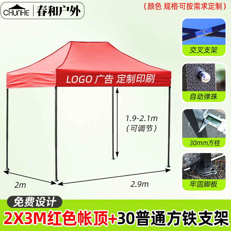 • 2* 3m 블랙 스퀘어 아이언 레드 탑 텐트