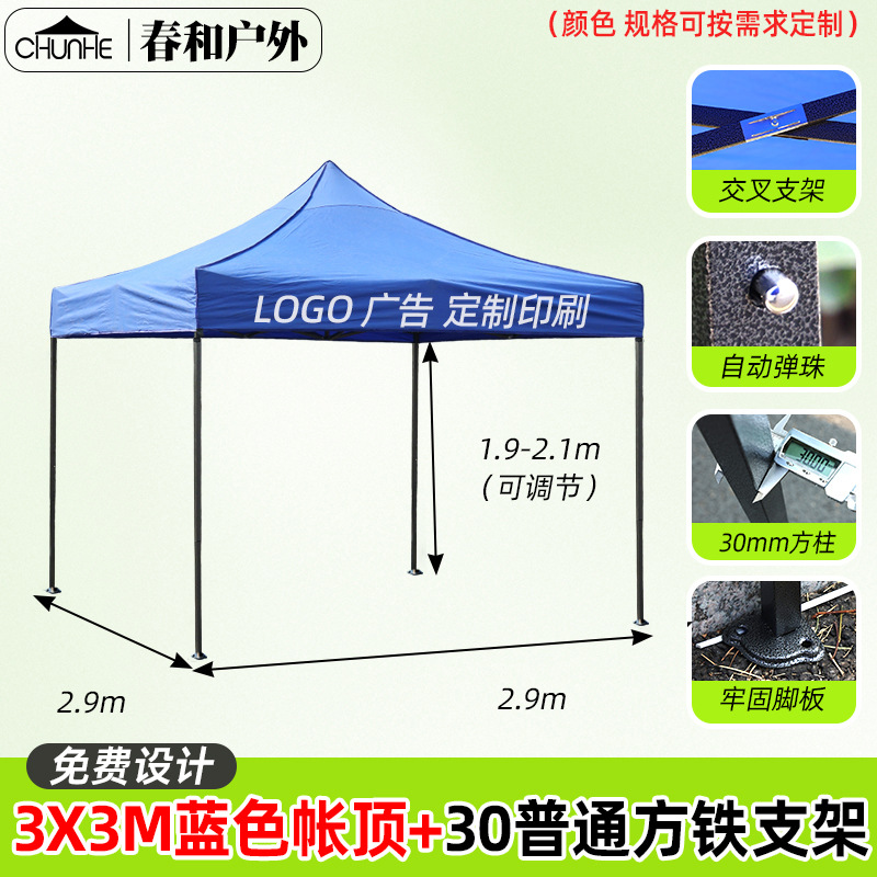 • 3* 3m 블랙 스퀘어 아이언 블루 탑 텐트