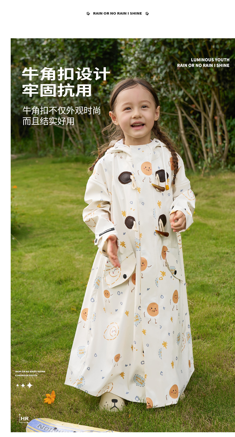 어린이 비옷, 학생용 비옷, 남아용 긴 기장 비옷, 초등학생, 유치원생, 여아용 방수 비옷, 즉시 배송, 해외배송