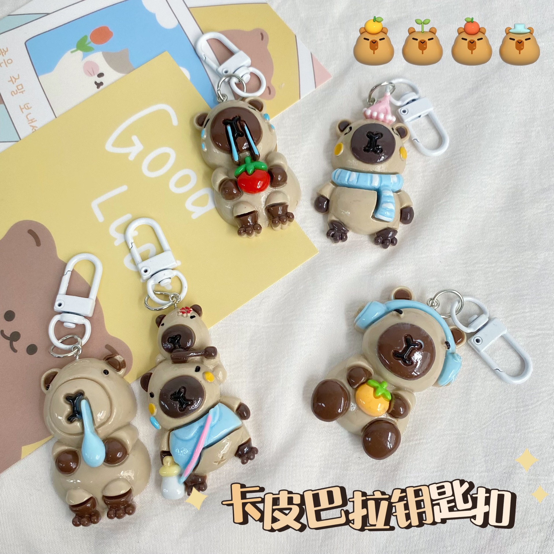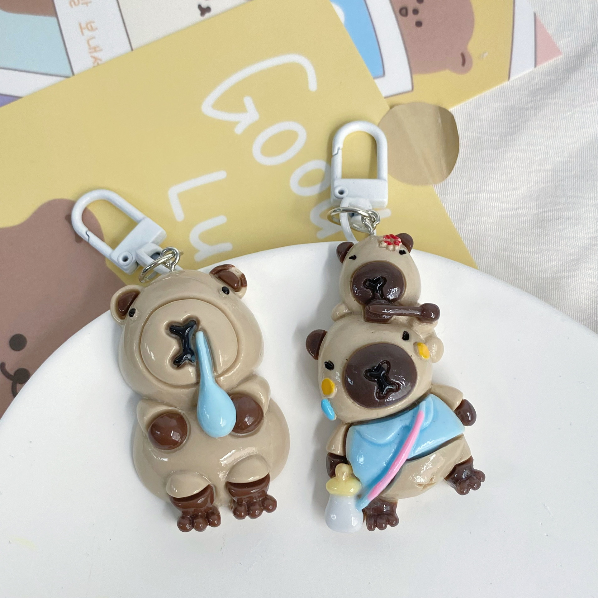 카파 발라 화이트 키 체인 귀여운 만화 재미 큰 펜던트 학생 커플 액세서리 선물 장식품스토어 가기