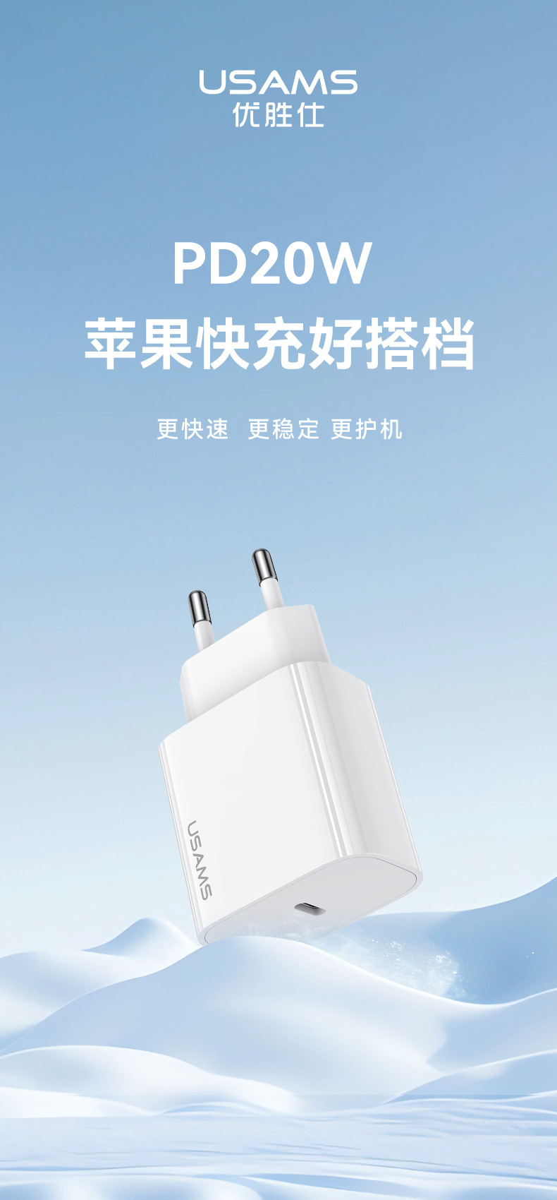 USAMS PD20w 충전 헤드 pd 빠른 충전 케이블 애플 15 충전기 9V2.2A 빠른 충전 헤드 유럽 표준스토어 가기
