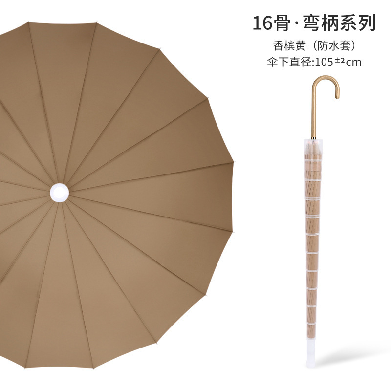 • 긴 손잡이 우산 16 뼈 방수 커버-샴페인 옐로우