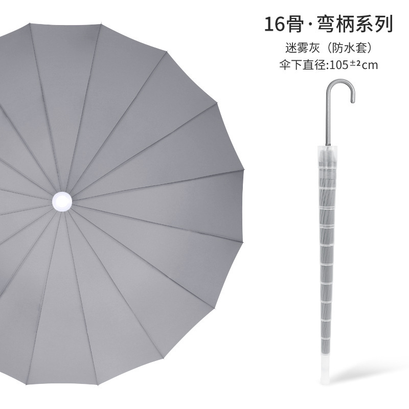 • 긴 손잡이 우산 16 뼈 방수 커버-회색