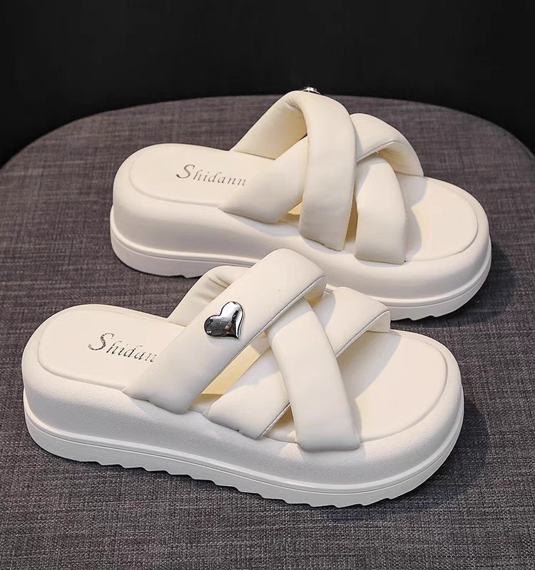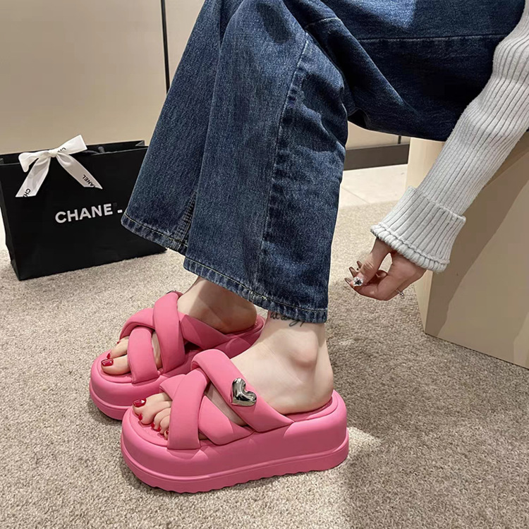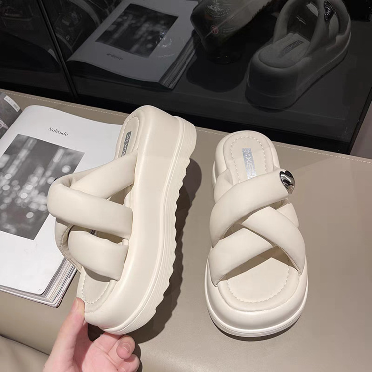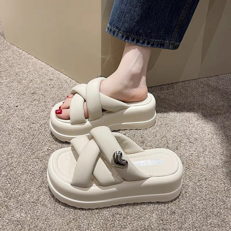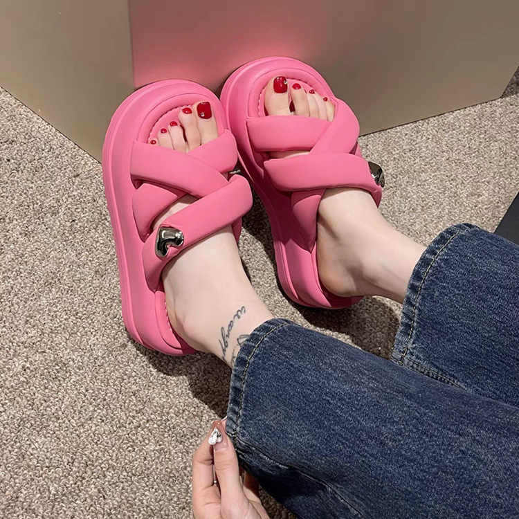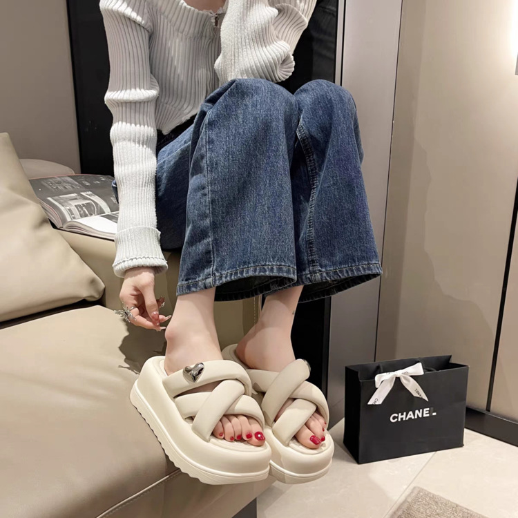 2024 여름 뉴 크로스 여성 슬리퍼 여성의 외부 착용 두꺼운 바닥 캐주얼 강화 비치 샌들 요정 스타일 여성 신발스토어 가기
