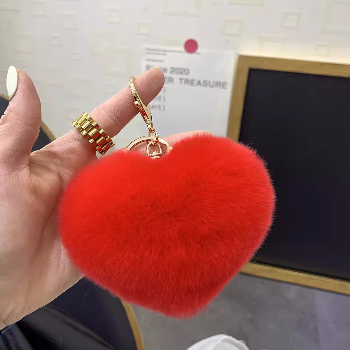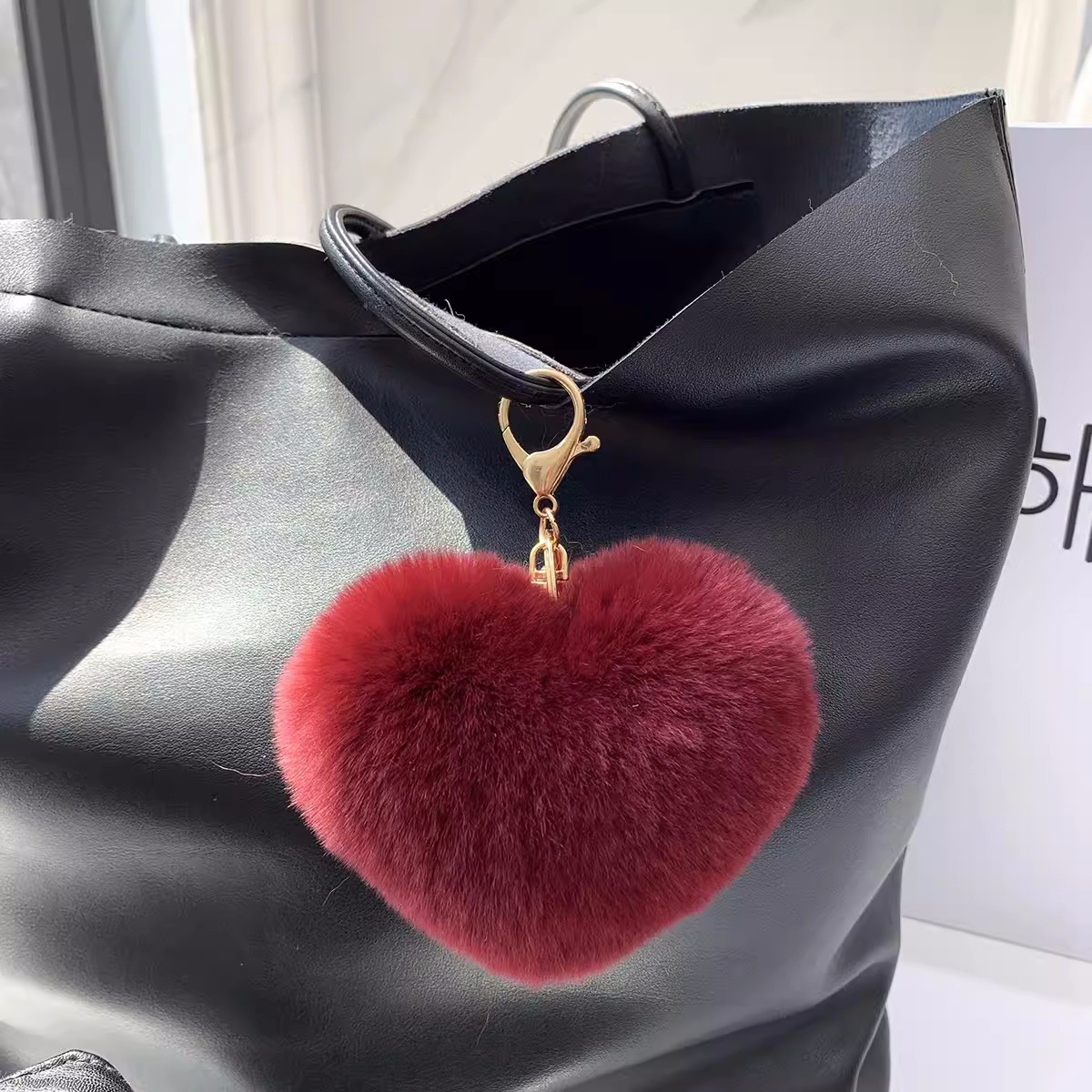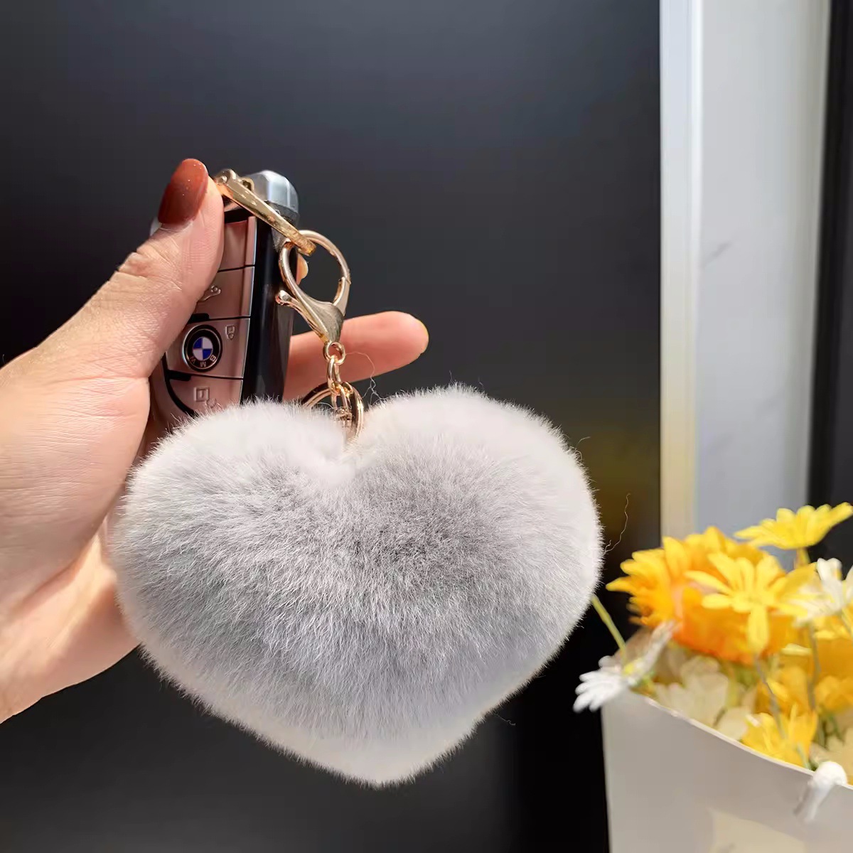 렉스 토끼 머리 사랑 자동차 키 체인 펜던트 귀여운 봉제 봉제 공 가방 매달려 장식품 하트 모양의 생일 선물