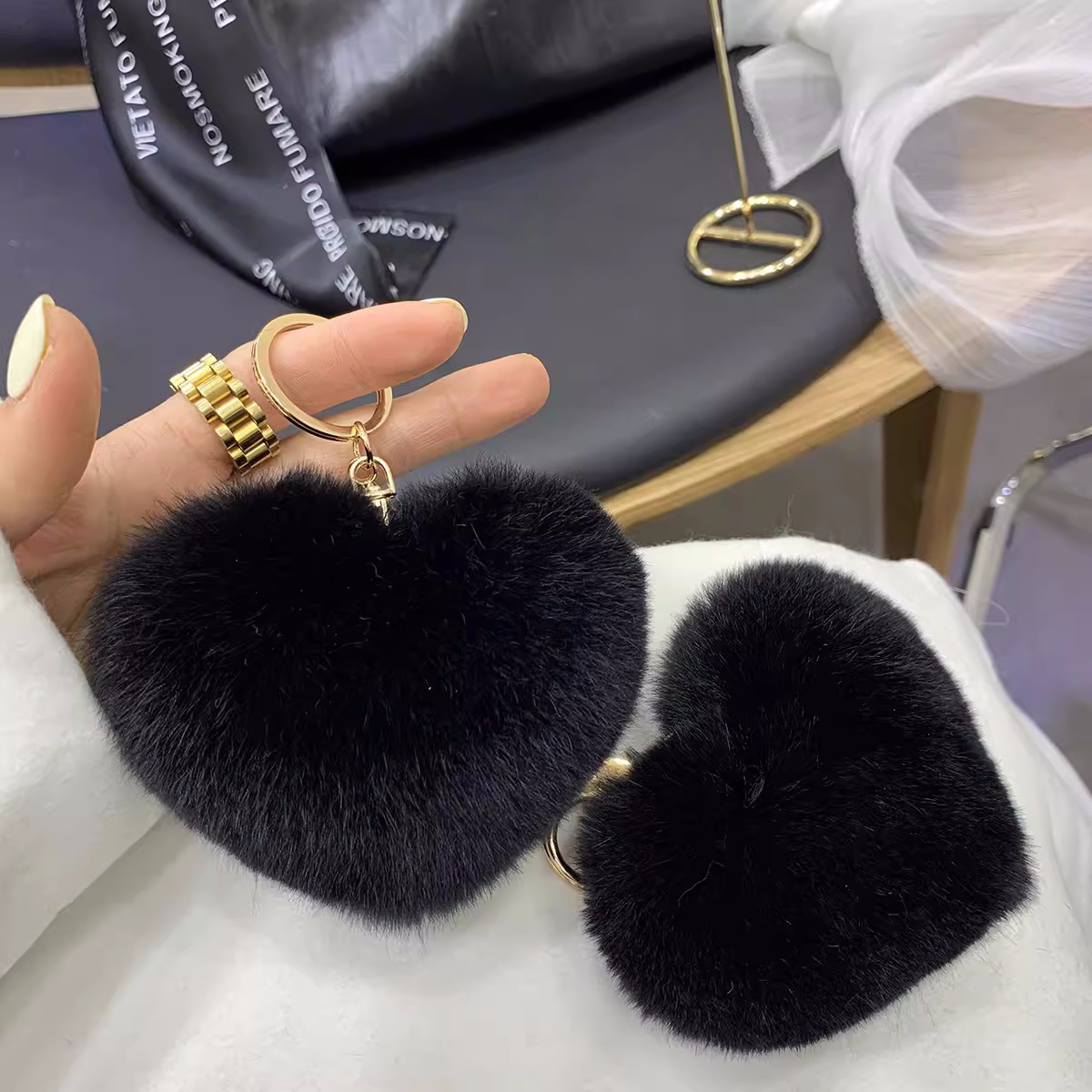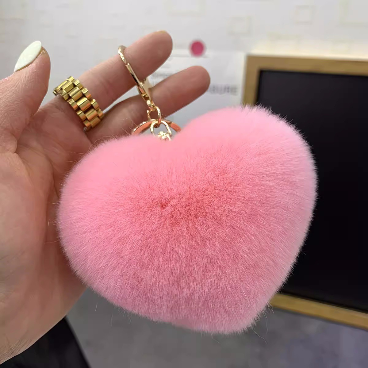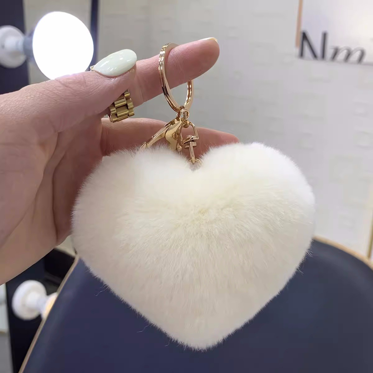 렉스 토끼 머리 사랑 자동차 키 체인 펜던트 귀여운 봉제 봉제 공 가방 매달려 장식품 하트 모양의 생일 선물