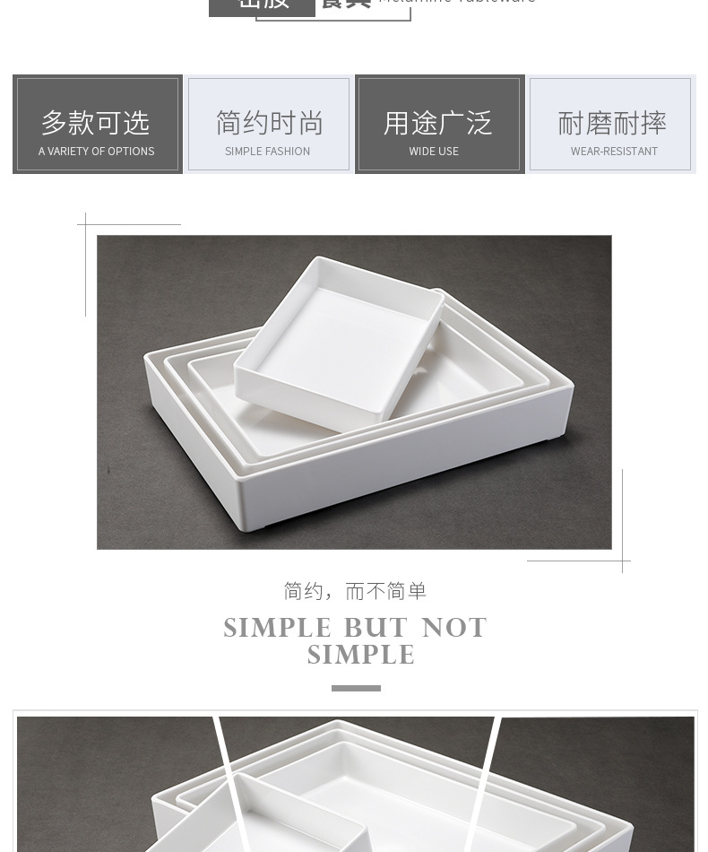 멜라민 식기 직사각형 절인 야채 요리 식품 절인 고기 플라스틱 트레이 끈 차가운 요리 번호 디스플레이 플레이트 상업