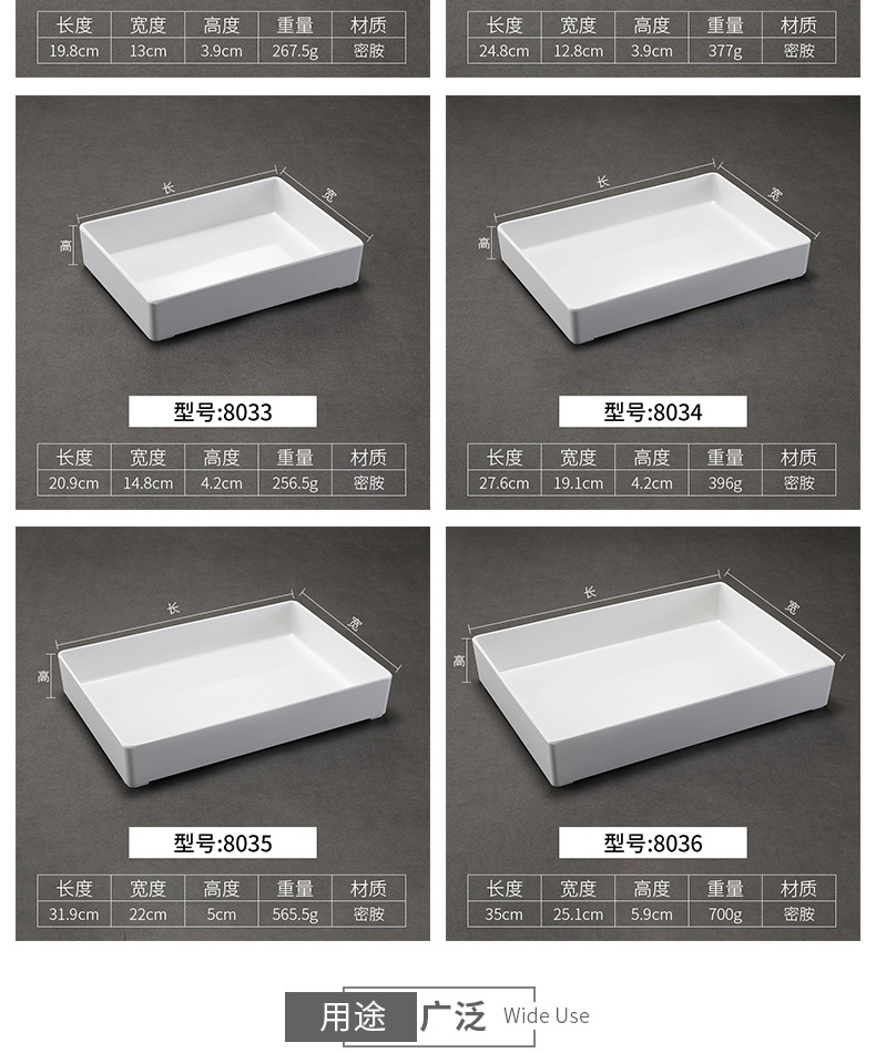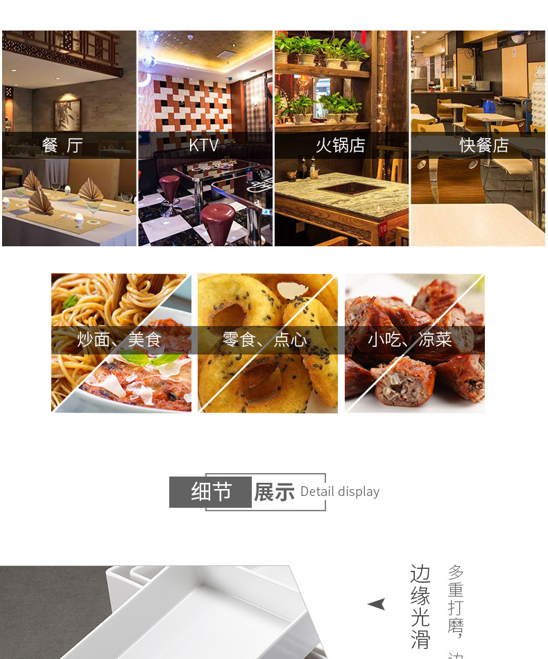 멜라민 식기 직사각형 절인 야채 요리 식품 절인 고기 플라스틱 트레이 끈 차가운 요리 번호 디스플레이 플레이트 상업스토어 가기