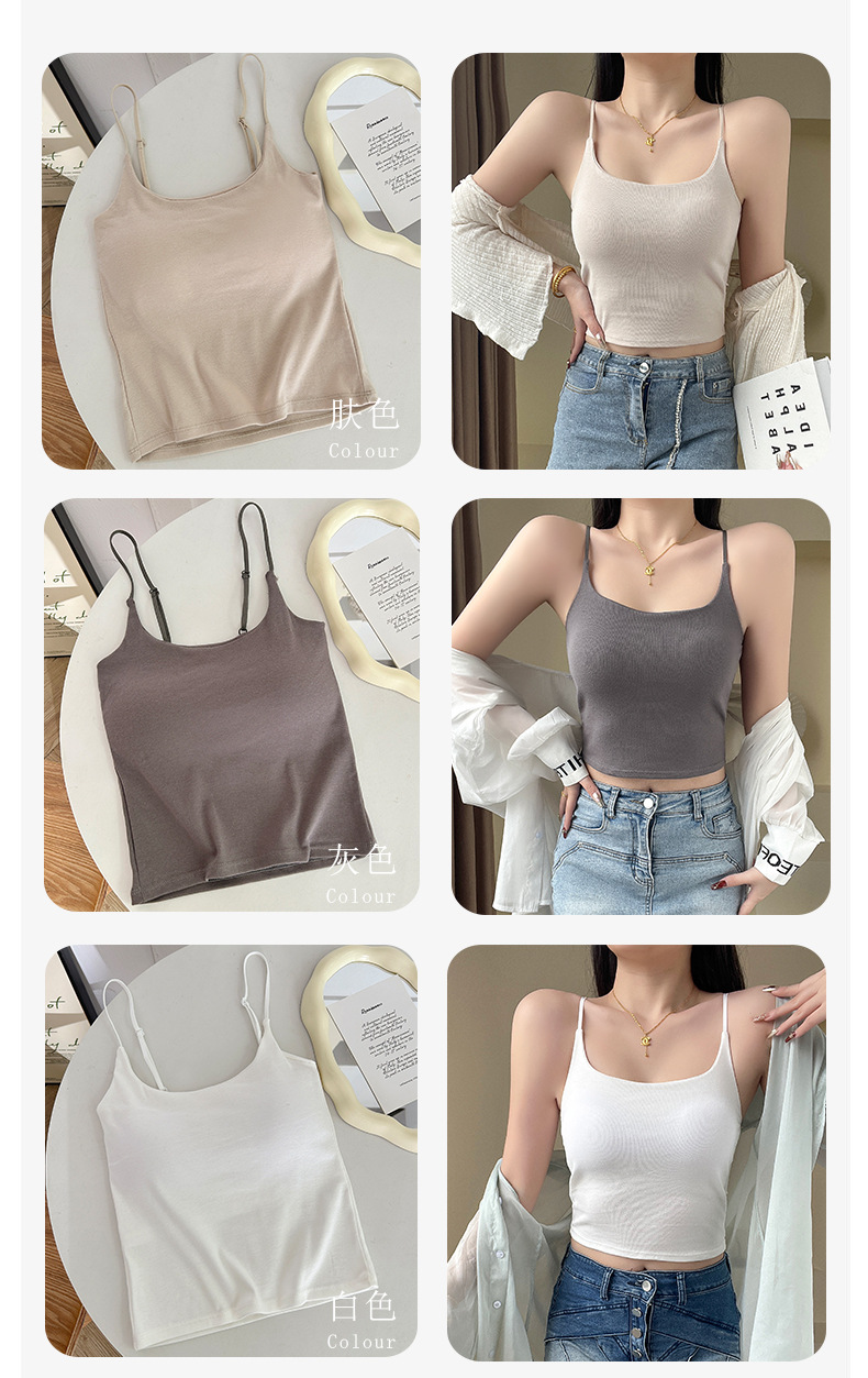 봄과 여름 새로운 뷰티 백 캐미솔 여성 가슴 패드 고정 컵 내부 및 외부 착용 캐미솔 튜브 상단 바닥 조끼 여성스토어 가기
