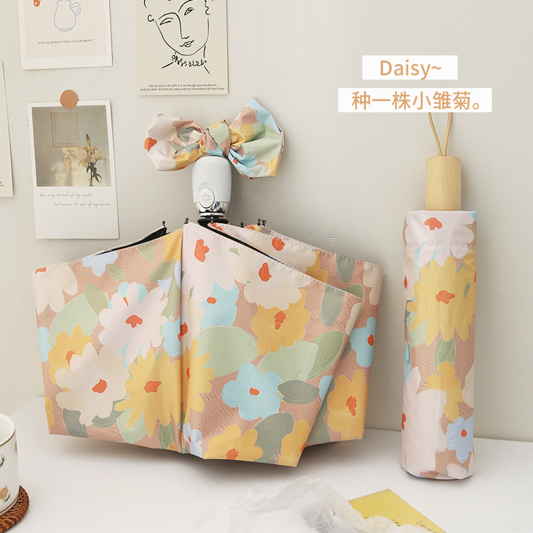 자동 접이식 태양 우산 남성과 여성의 휴대용 일본 스타일 데이지 태양 우산 자외선 차단 태양 우산스토어 가기