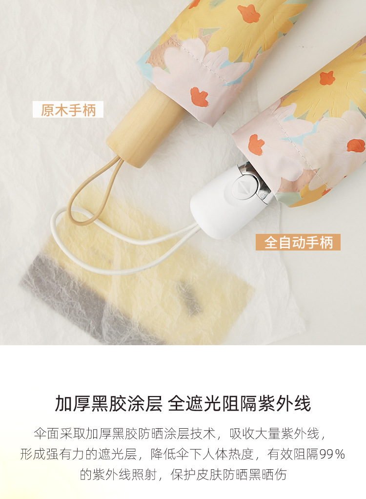 자동 접이식 태양 우산 남성과 여성의 휴대용 일본 스타일 데이지 태양 우산 자외선 차단 태양 우산