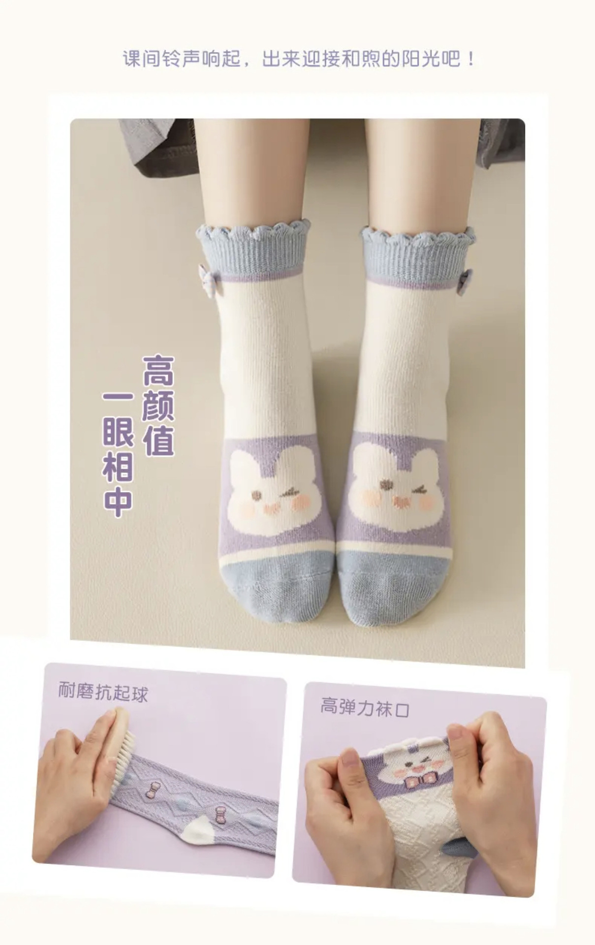 아동용 양말 여자아이 가을 겨울 롱삭스 아기 토끼 만화 캐릭터 여자아이 중목 양말 귀여운 면 양말스토어 가기