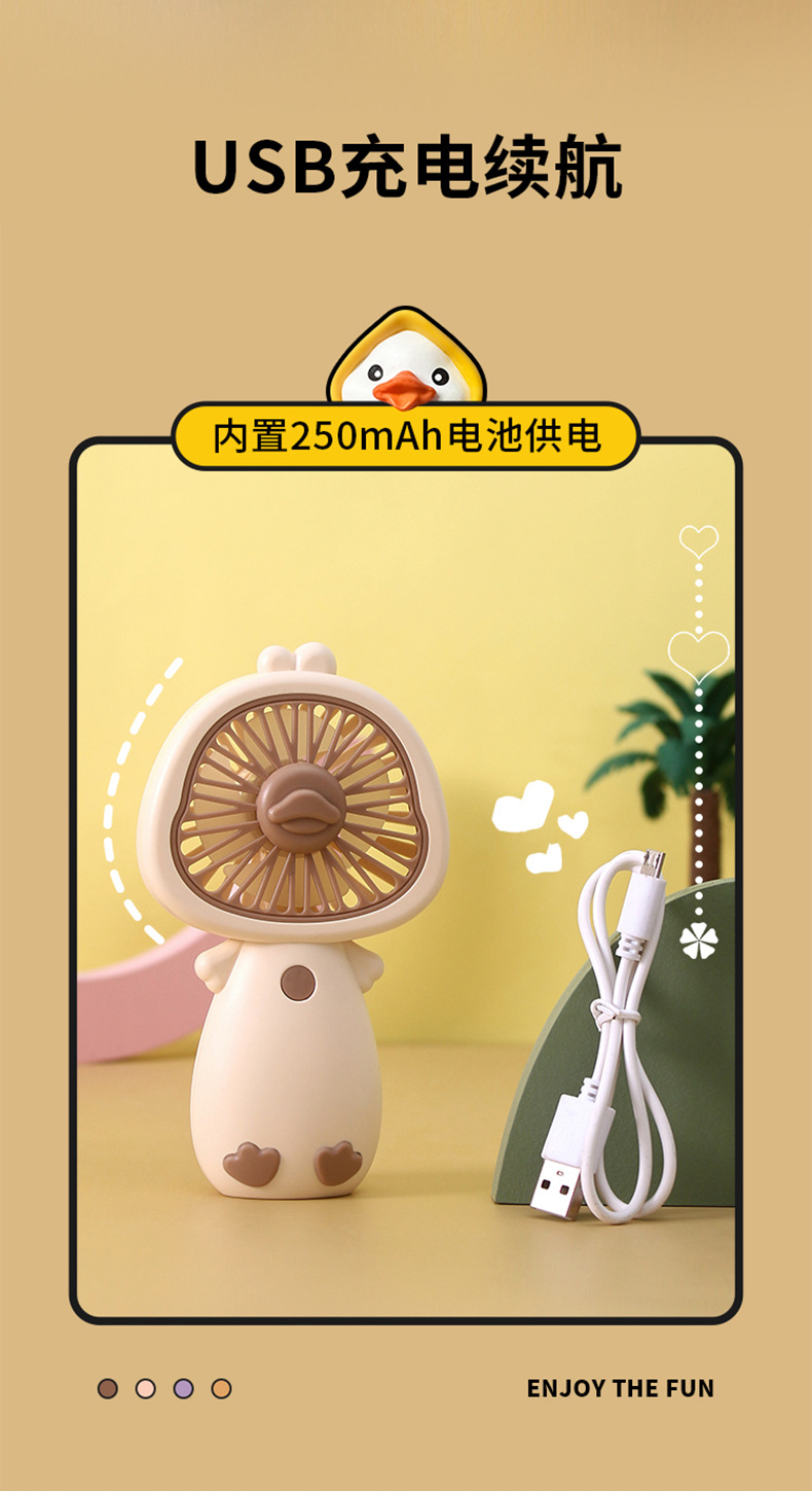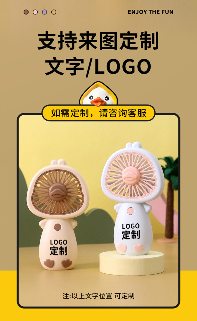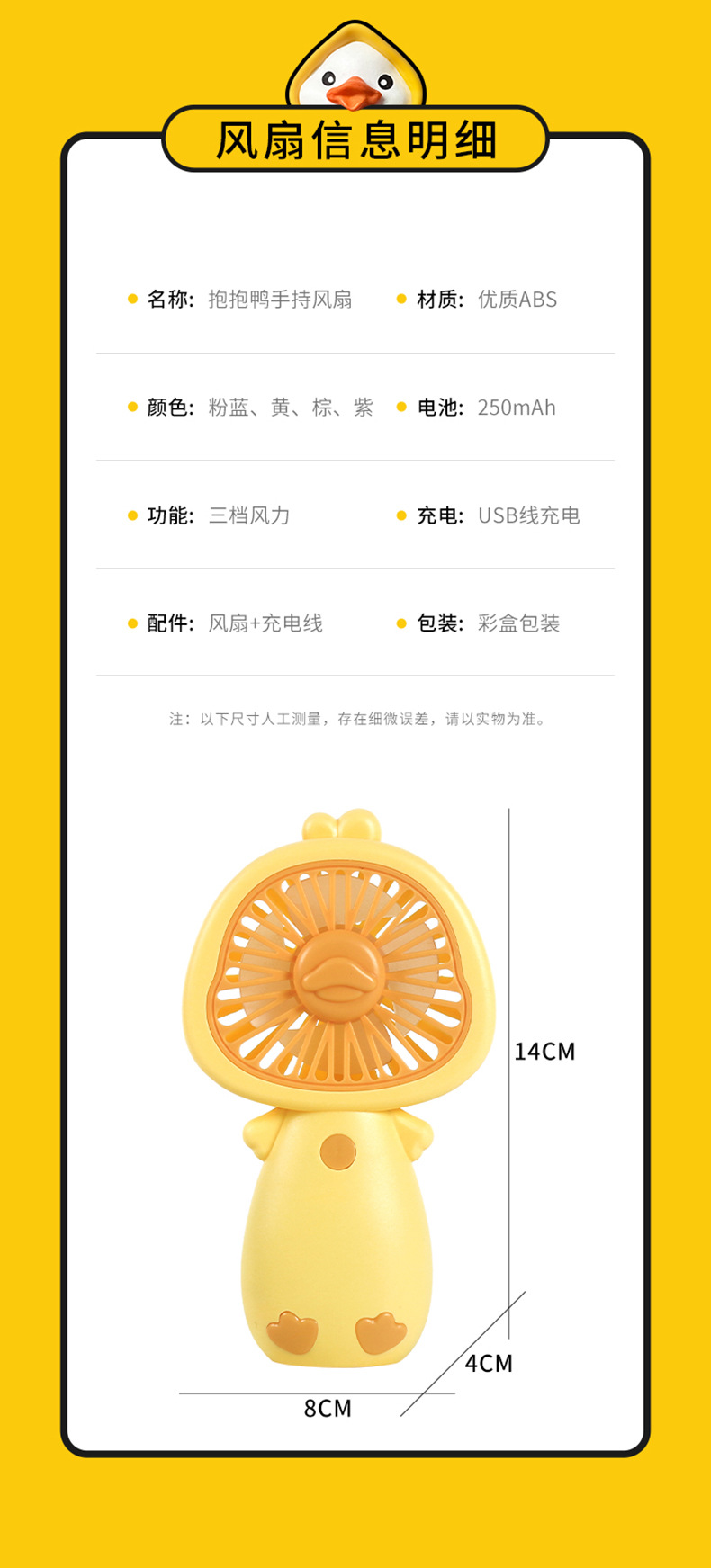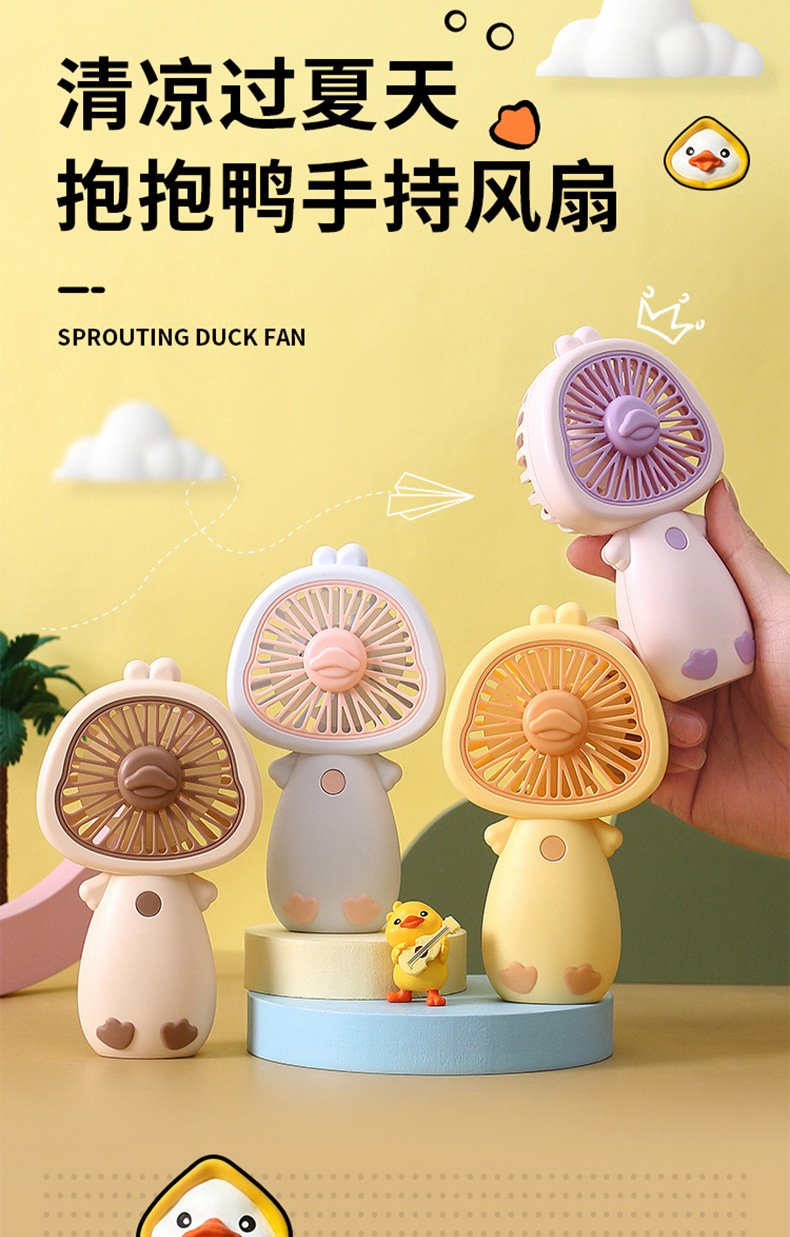 크로스 보더 새로운 포옹 오리 귀여운 휴대용 휴대용 작은 팬 선물 팬 귀여운 애완 동물 전기 팬 공장에 적합스토어 가기