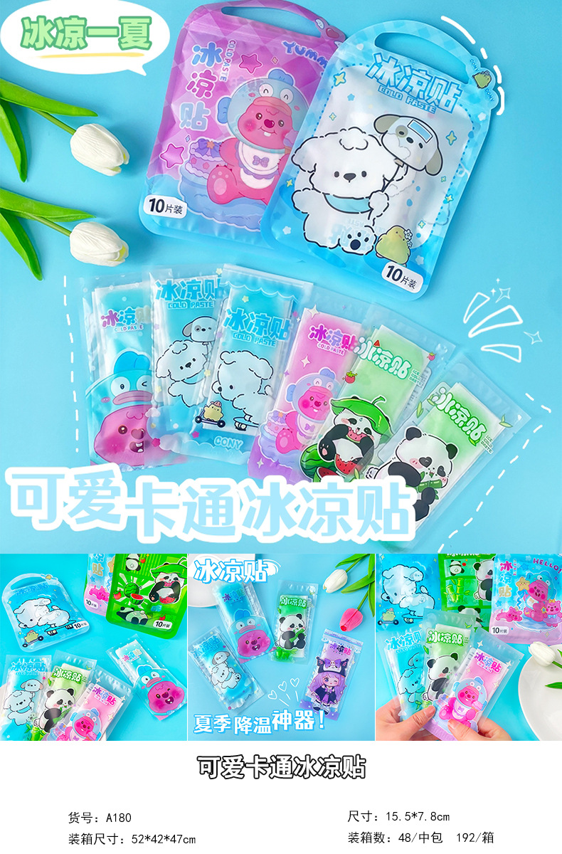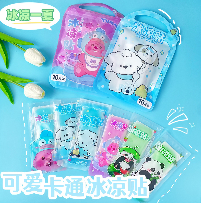 새로운 만화 귀여운 포장 얼음 웨이크 업 스티커 냉각 상쾌한 멋진 스티커 다기능 얼음 냉각 스티커 10 개 도매