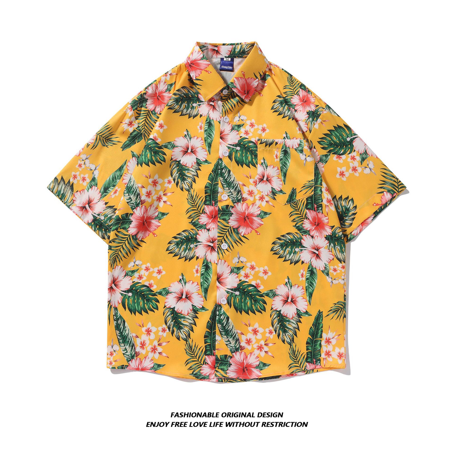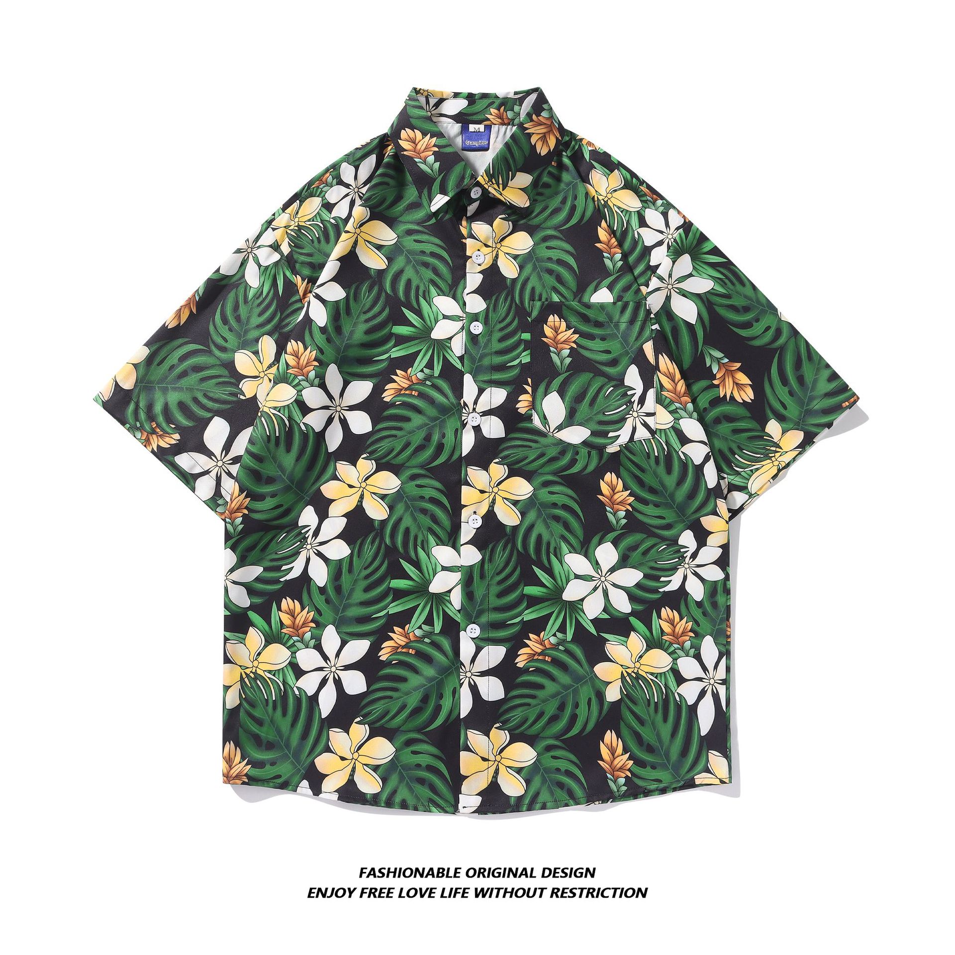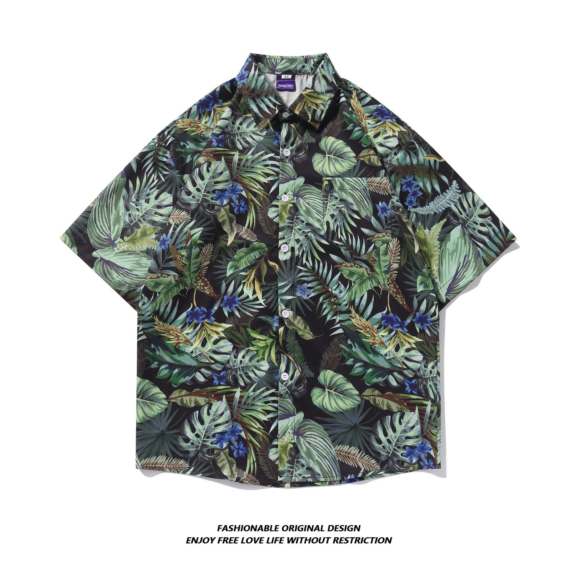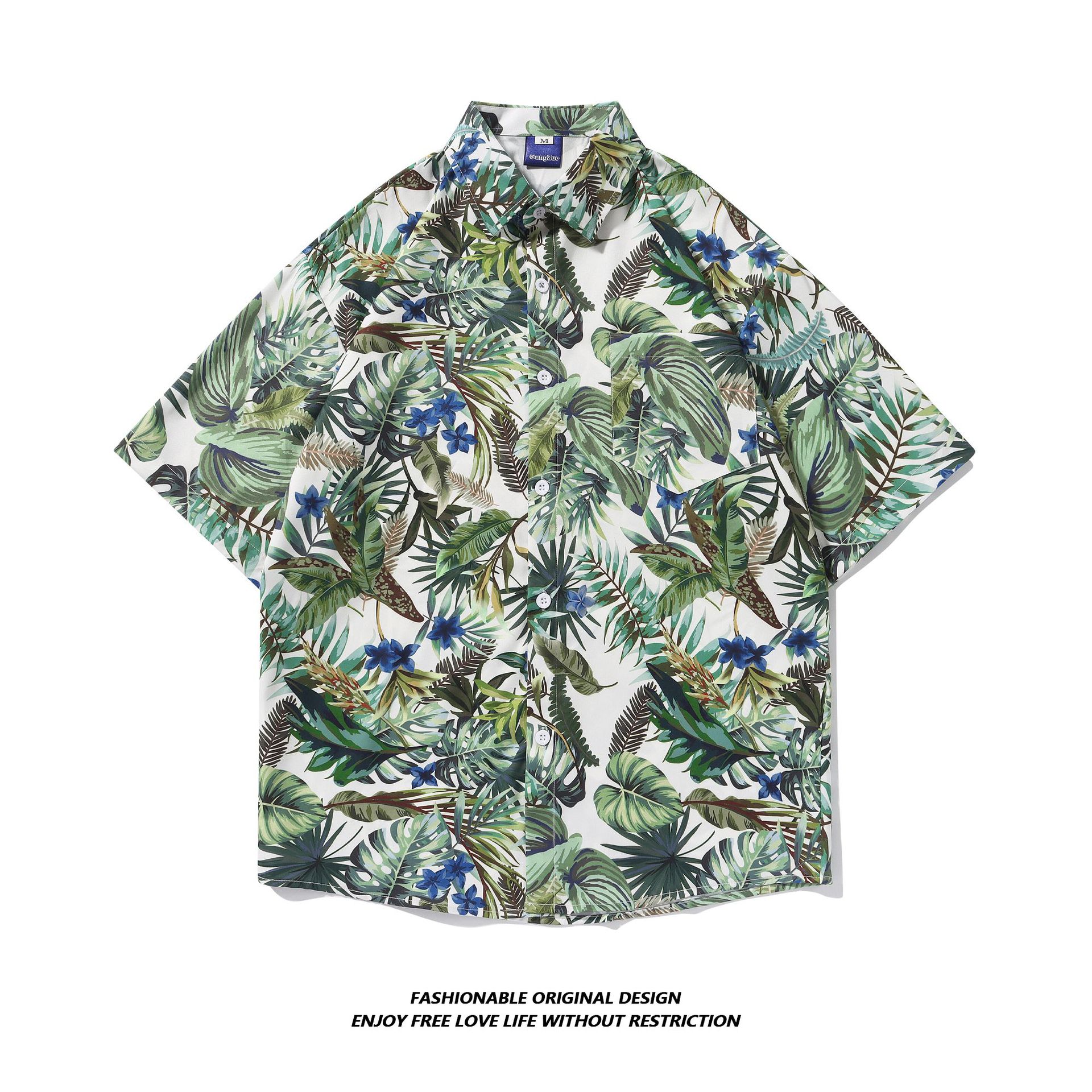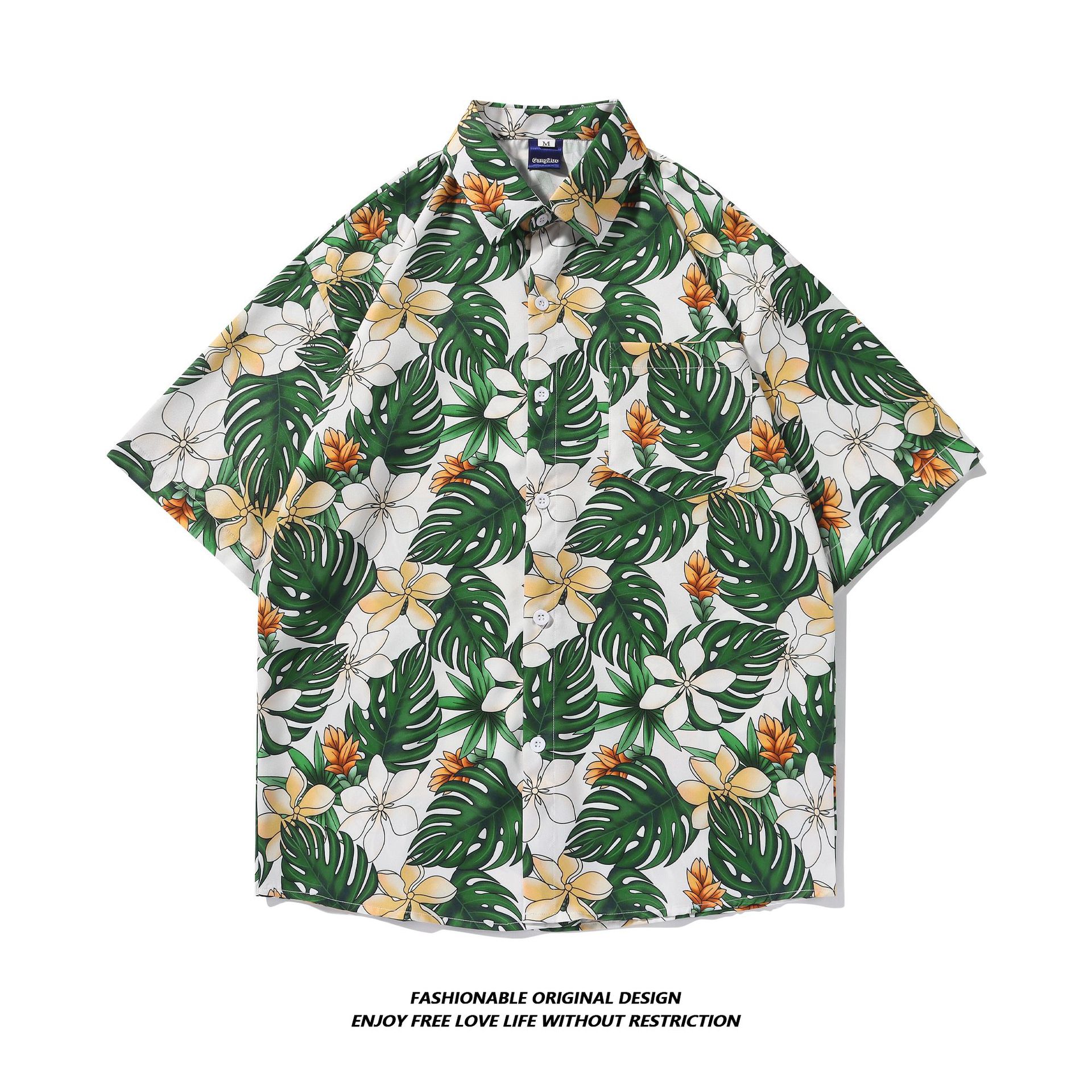 태국 하와이 꽃 무늬 셔츠 남성 여름 얇은 홍콩 스타일, 패션 브랜드 루안 잘 생긴 캐주얼 패션 하프 슬리브 탑