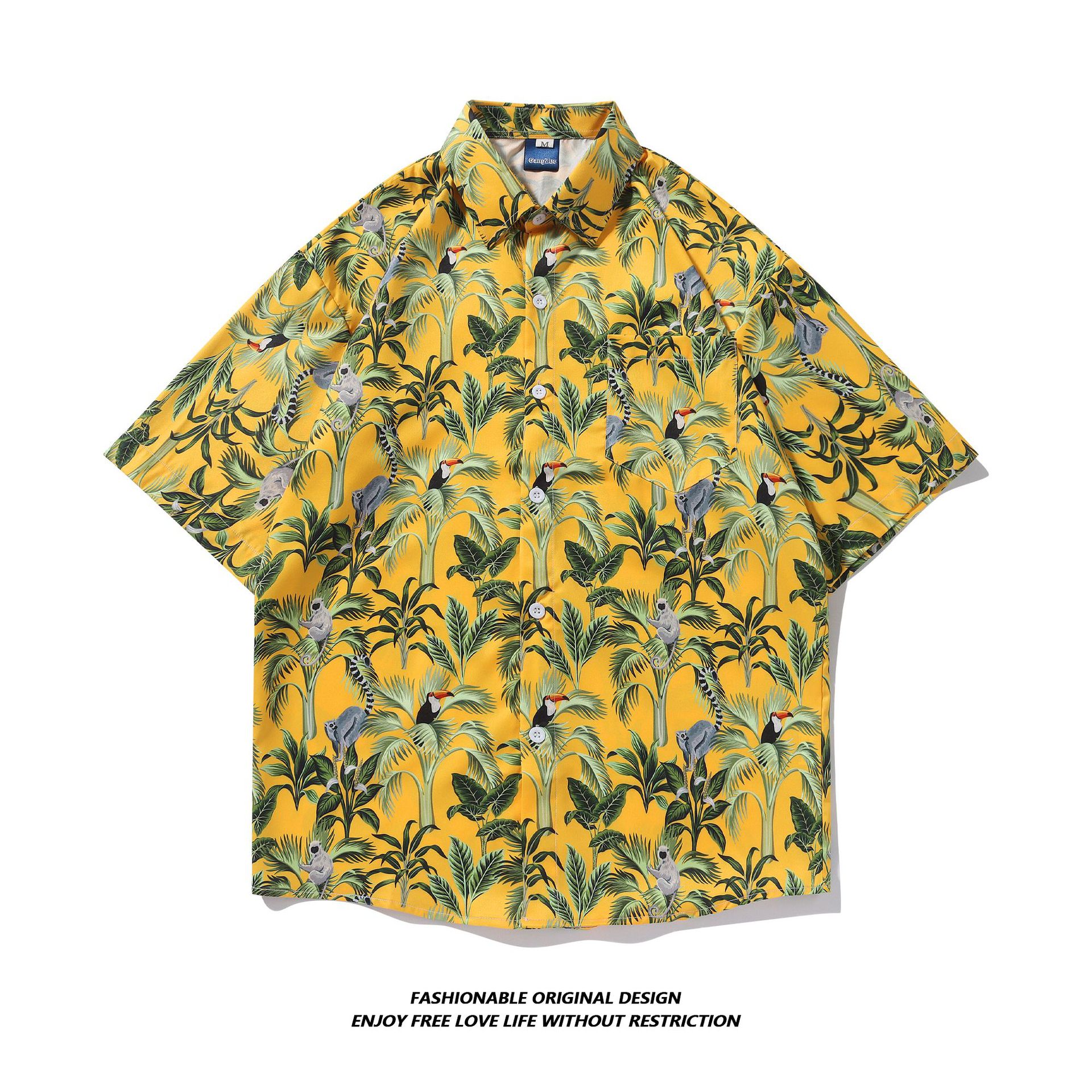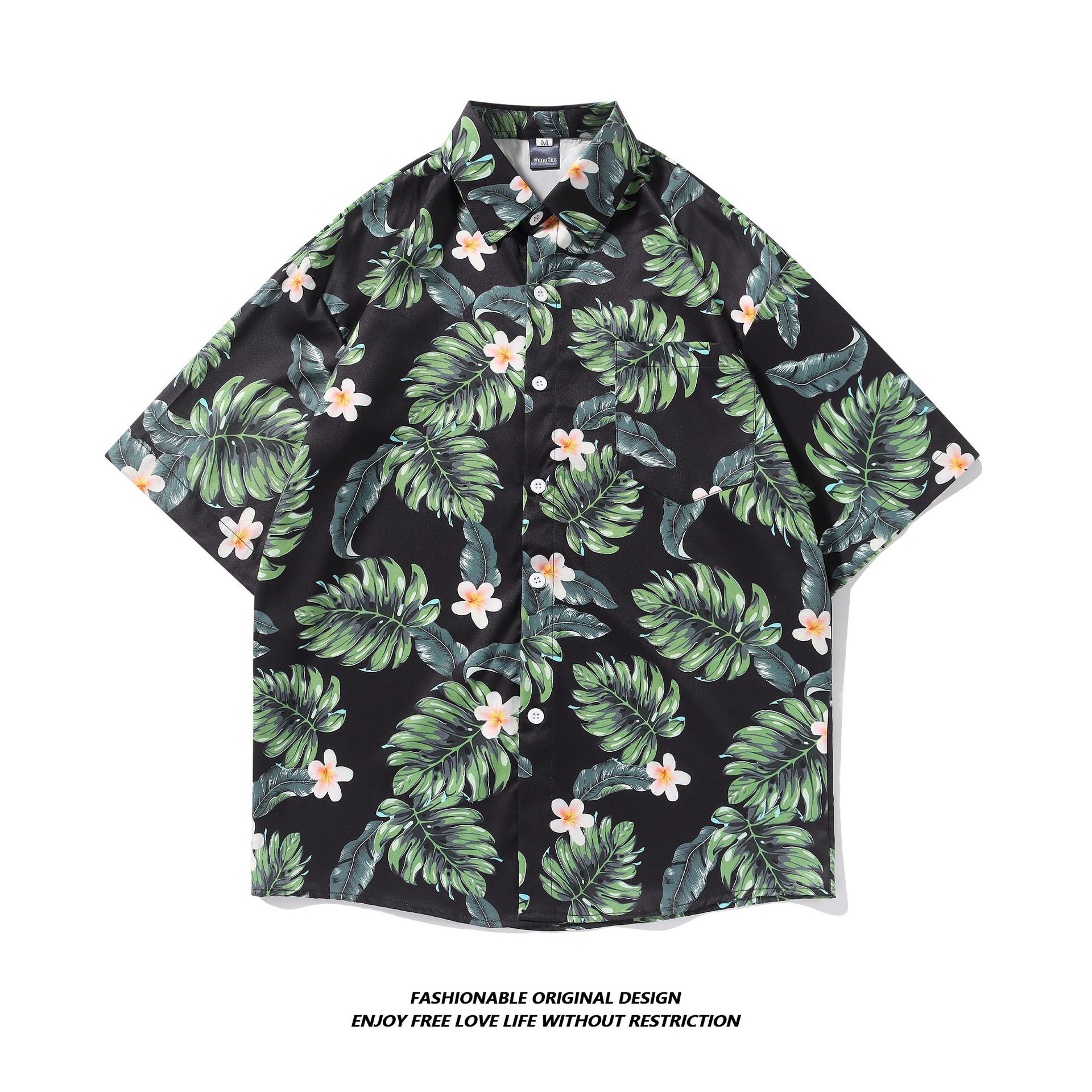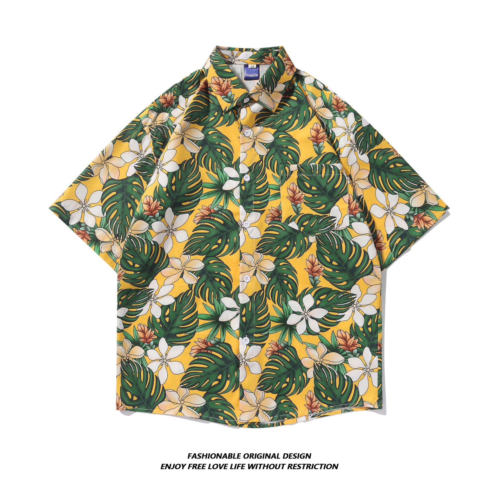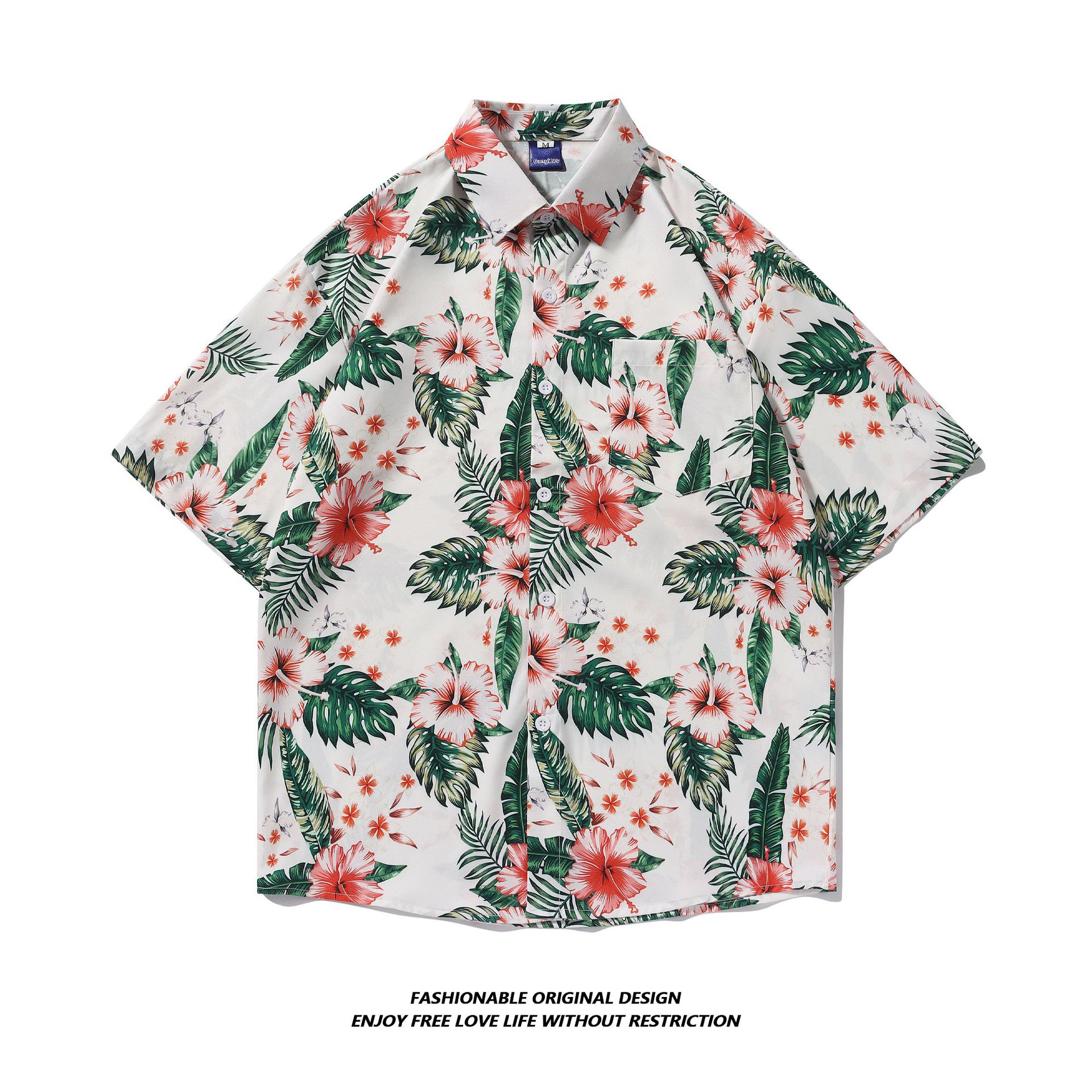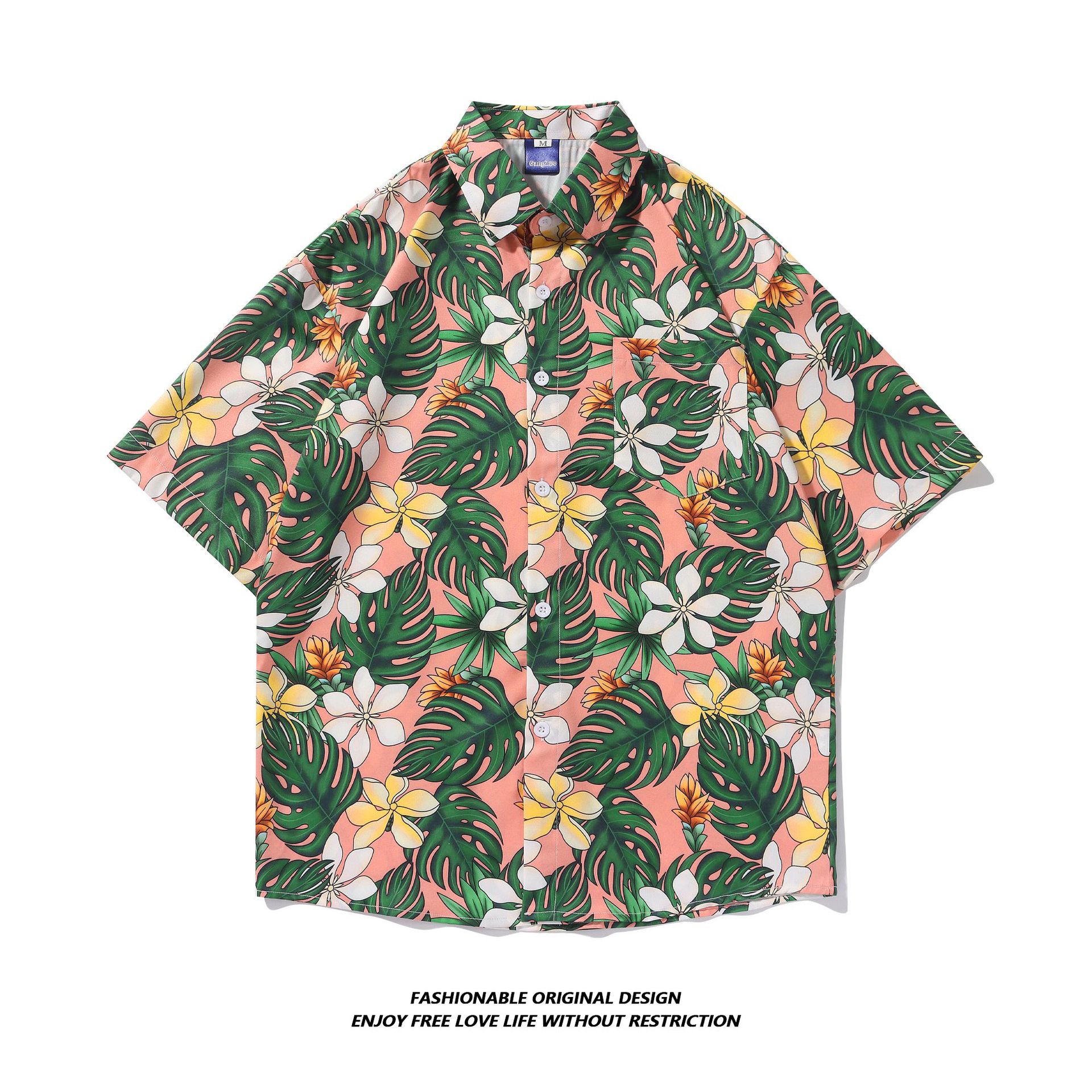 태국 하와이 꽃 무늬 셔츠 남성 여름 얇은 홍콩 스타일, 패션 브랜드 루안 잘 생긴 캐주얼 패션 하프 슬리브 탑