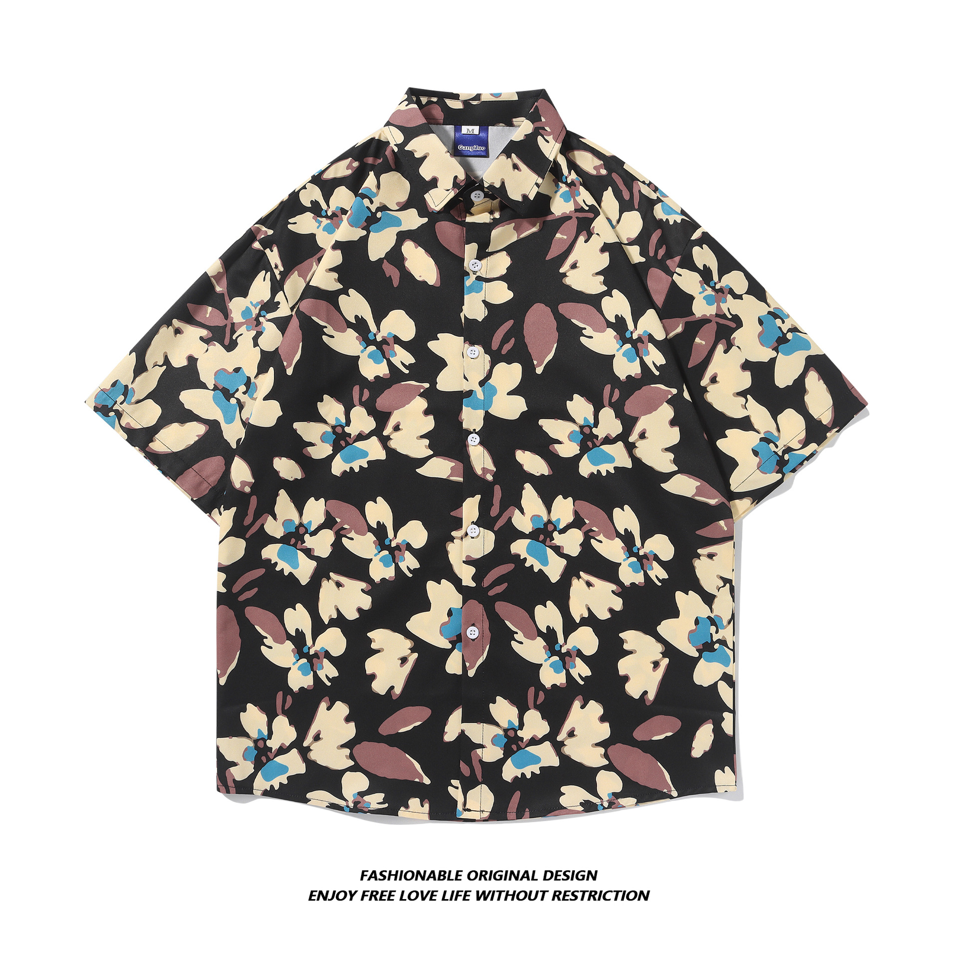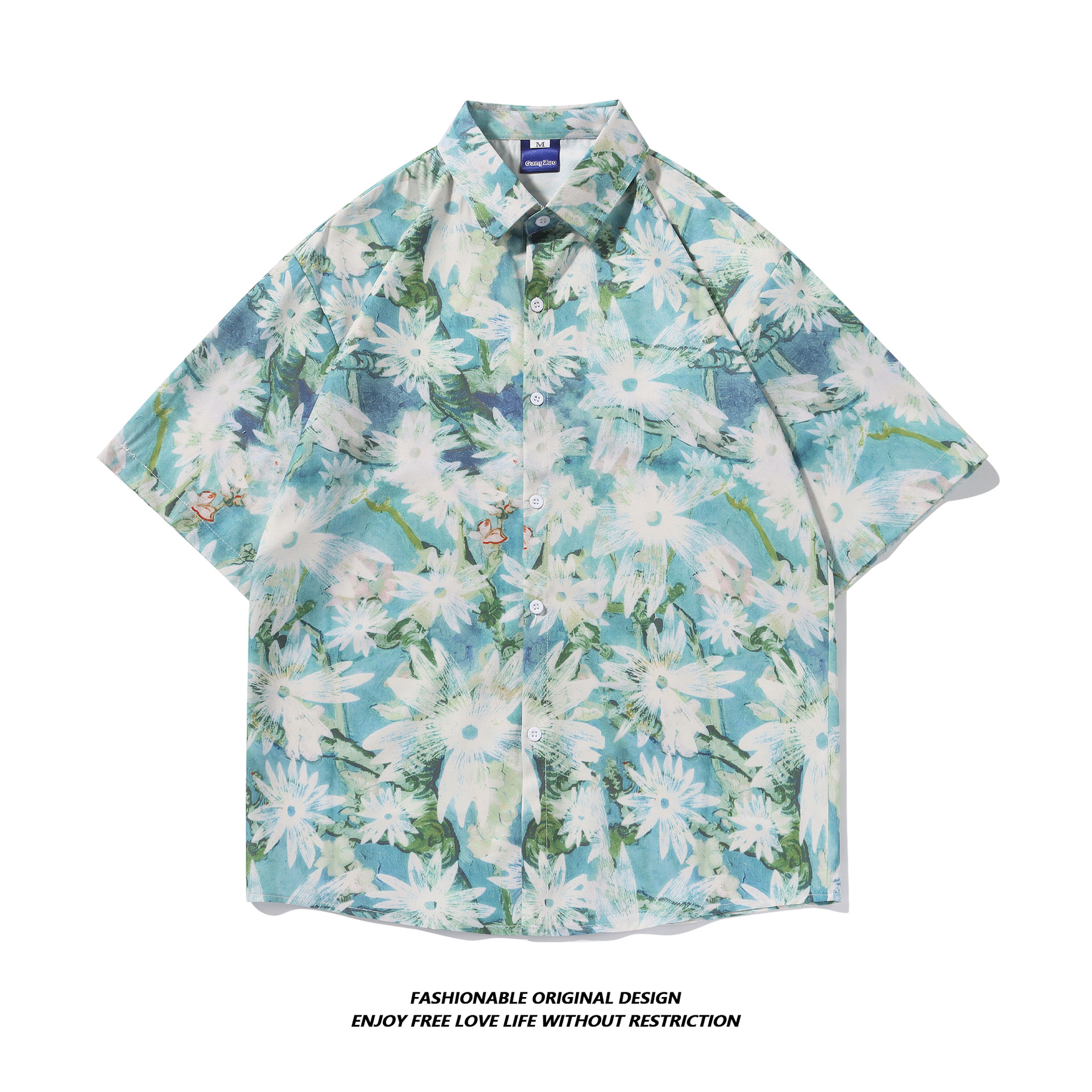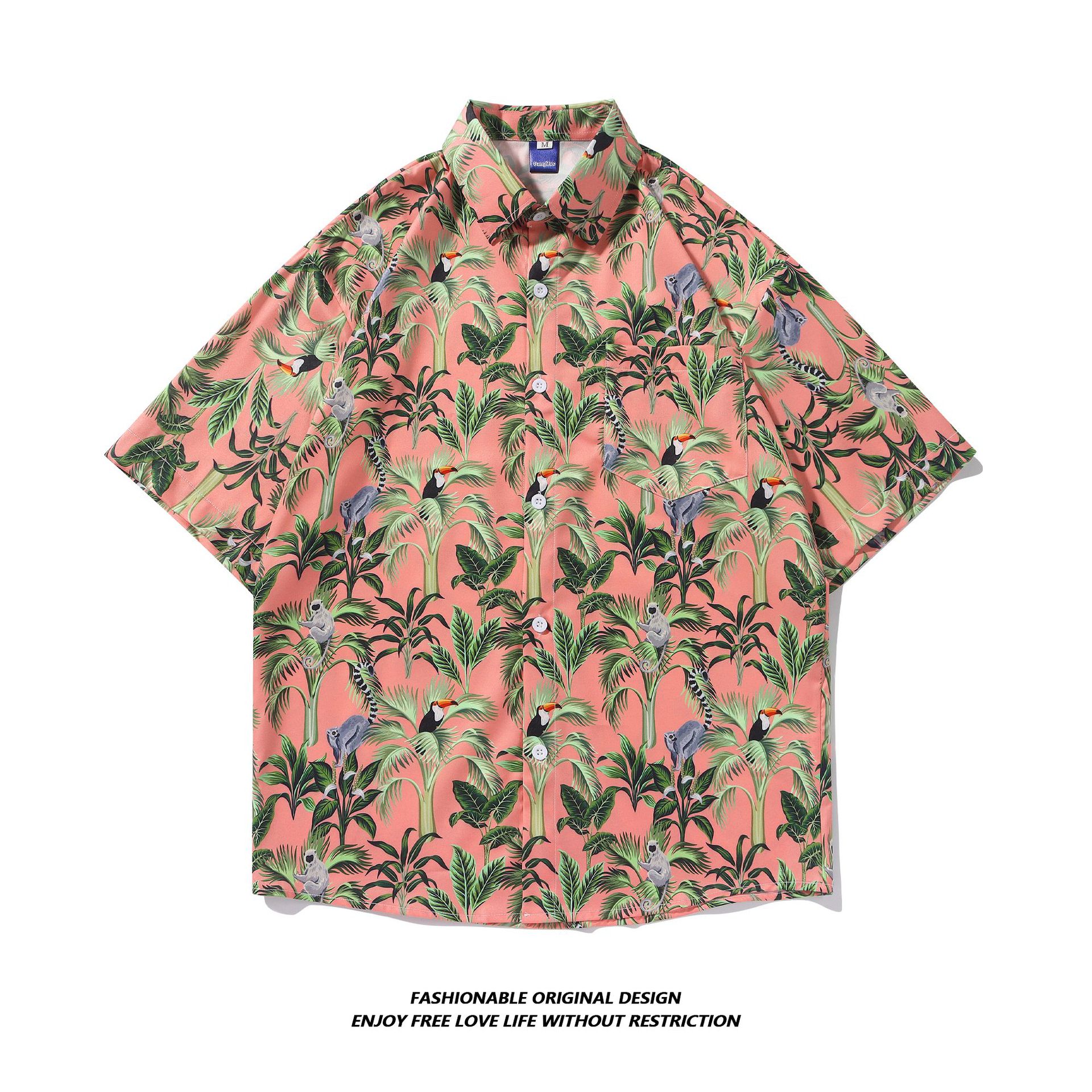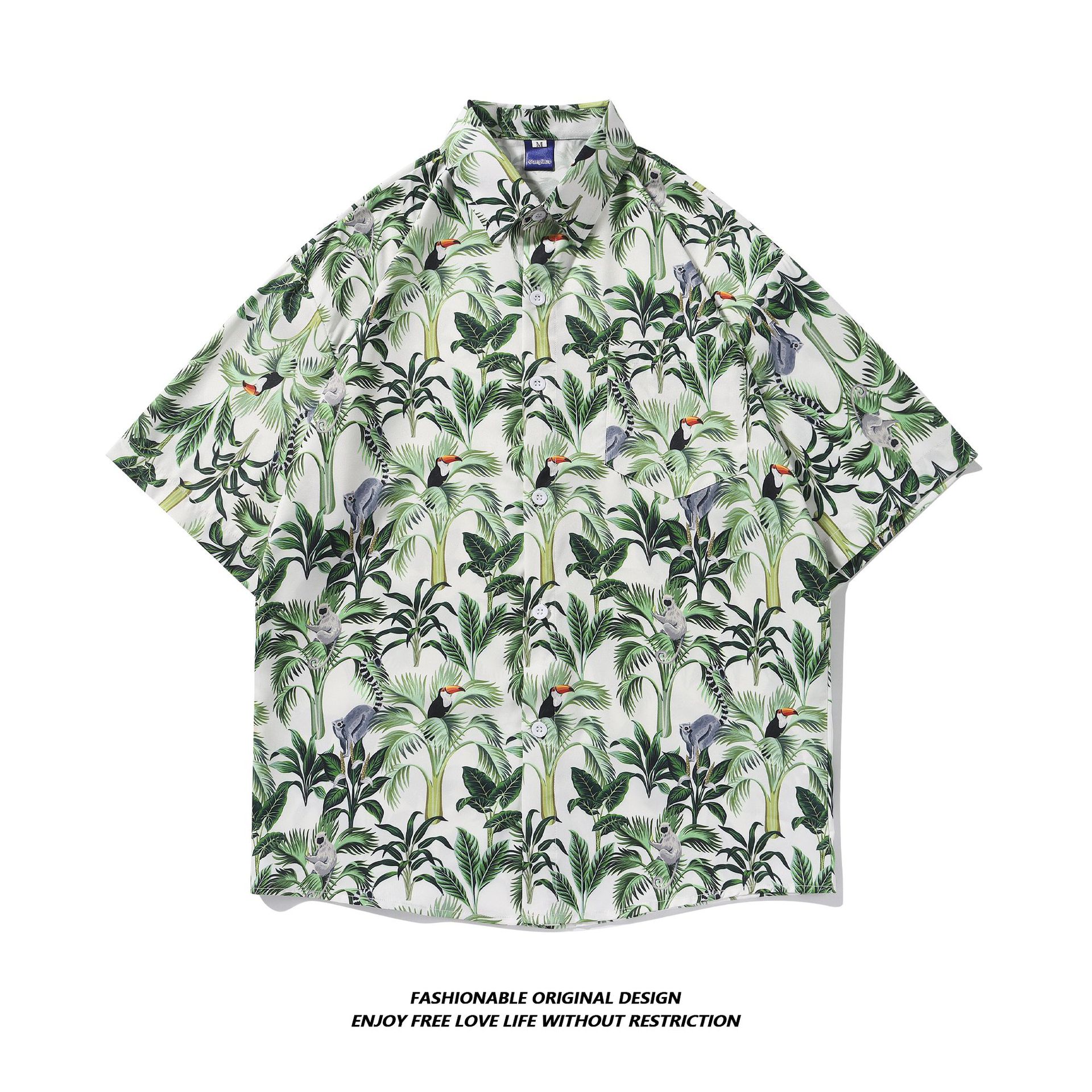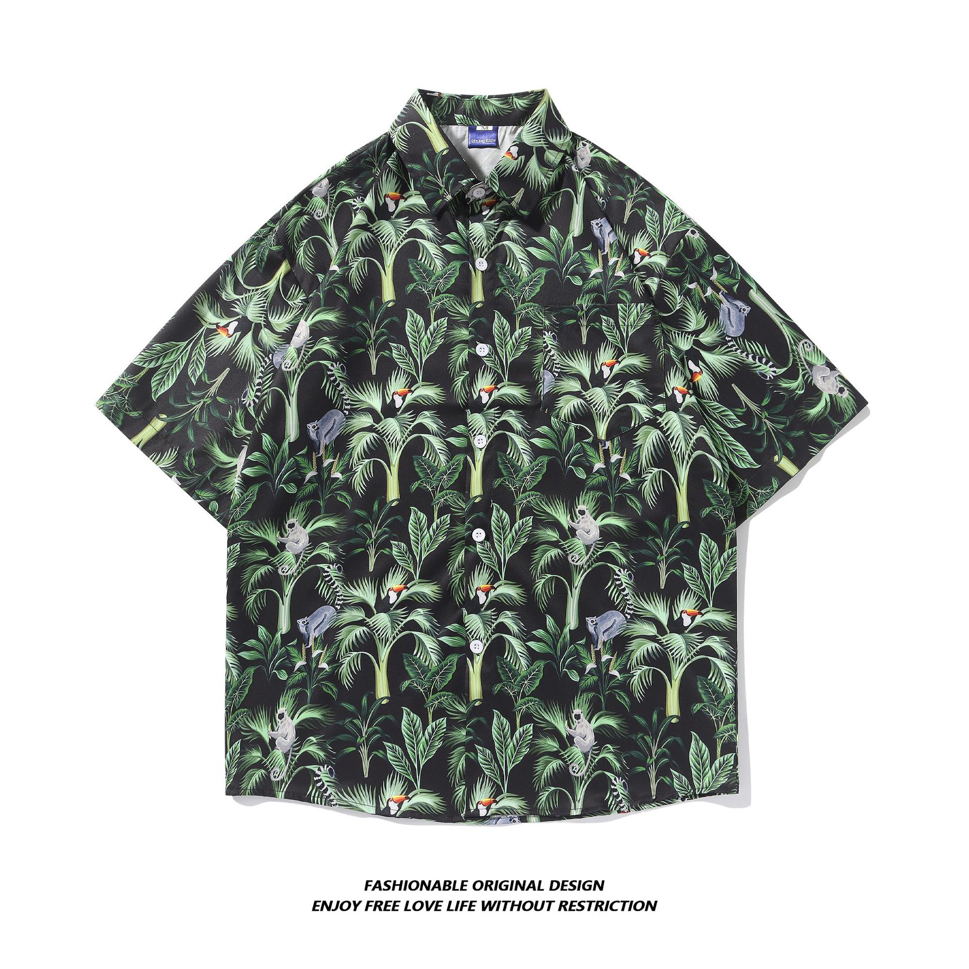 태국 하와이 꽃 무늬 셔츠 남성 여름 얇은 홍콩 스타일, 패션 브랜드 루안 잘 생긴 캐주얼 패션 하프 슬리브 탑