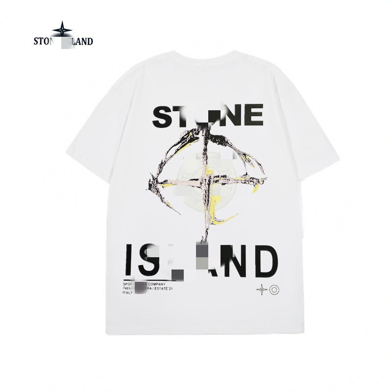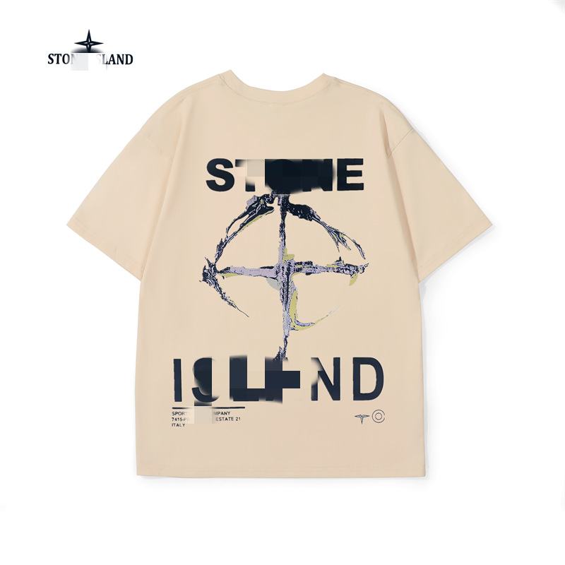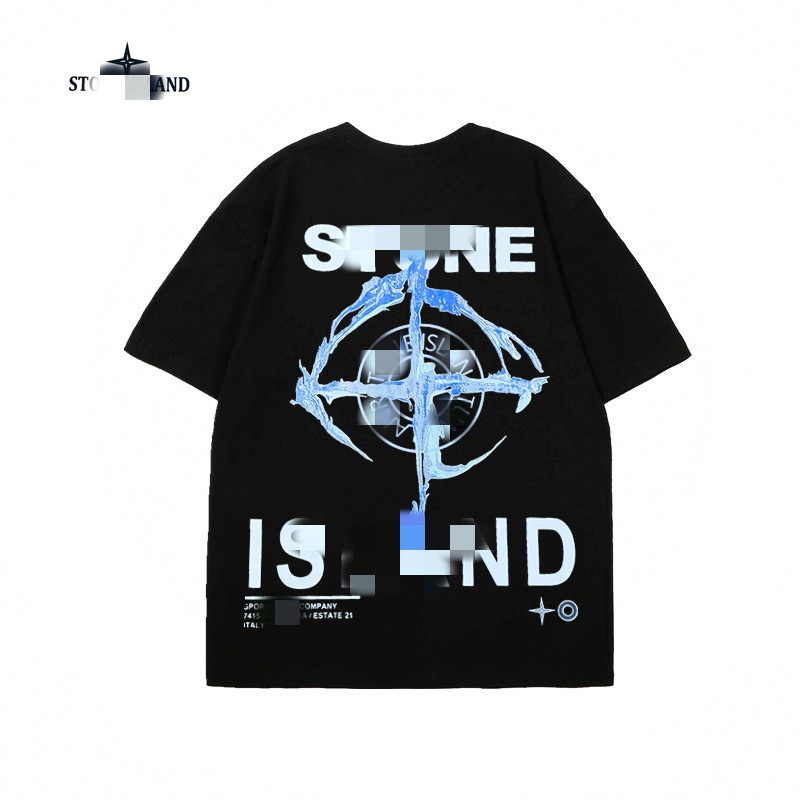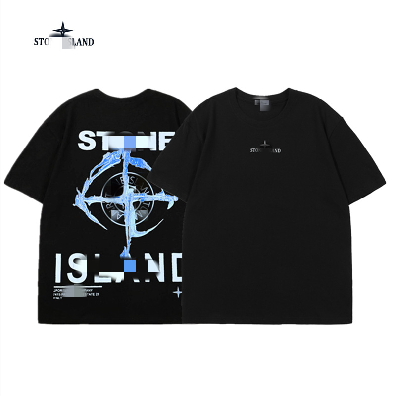 국경 간 스톤 스플래시 잉크 워터 플로우 크로스 나침반 입체 인쇄 캐주얼 반팔 티셔츠 남성과 여성 대외 무역스토어 가기