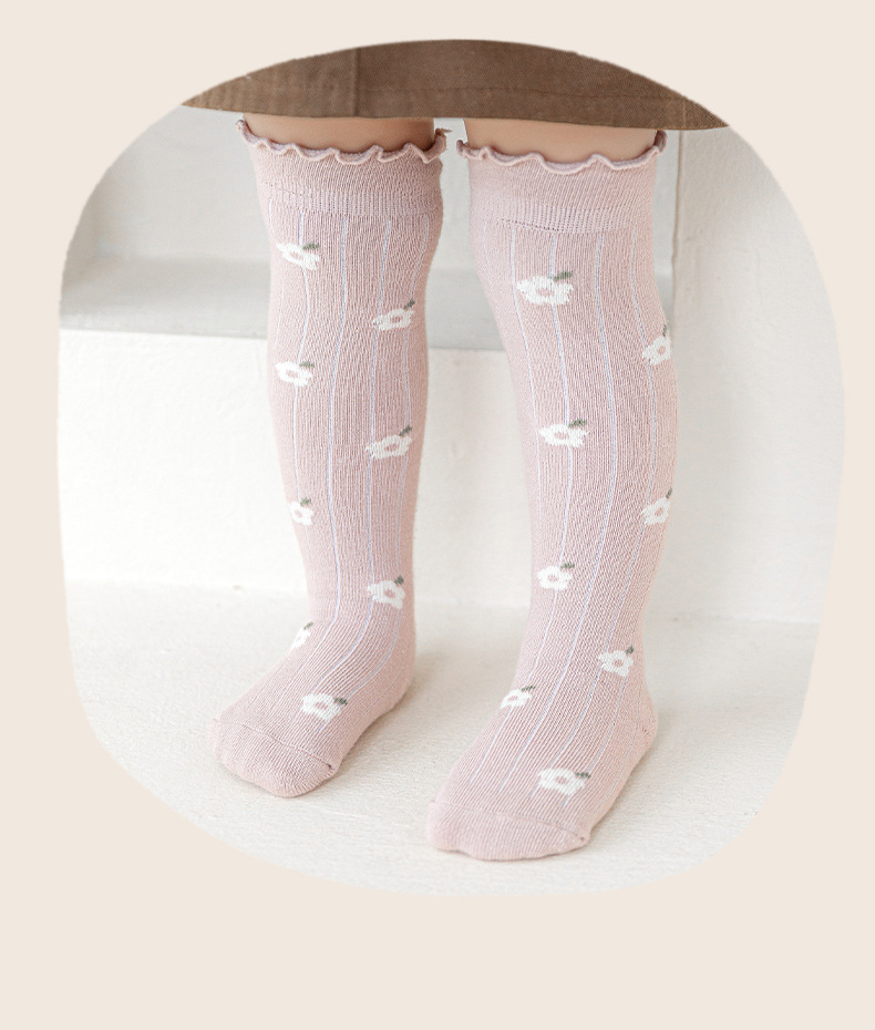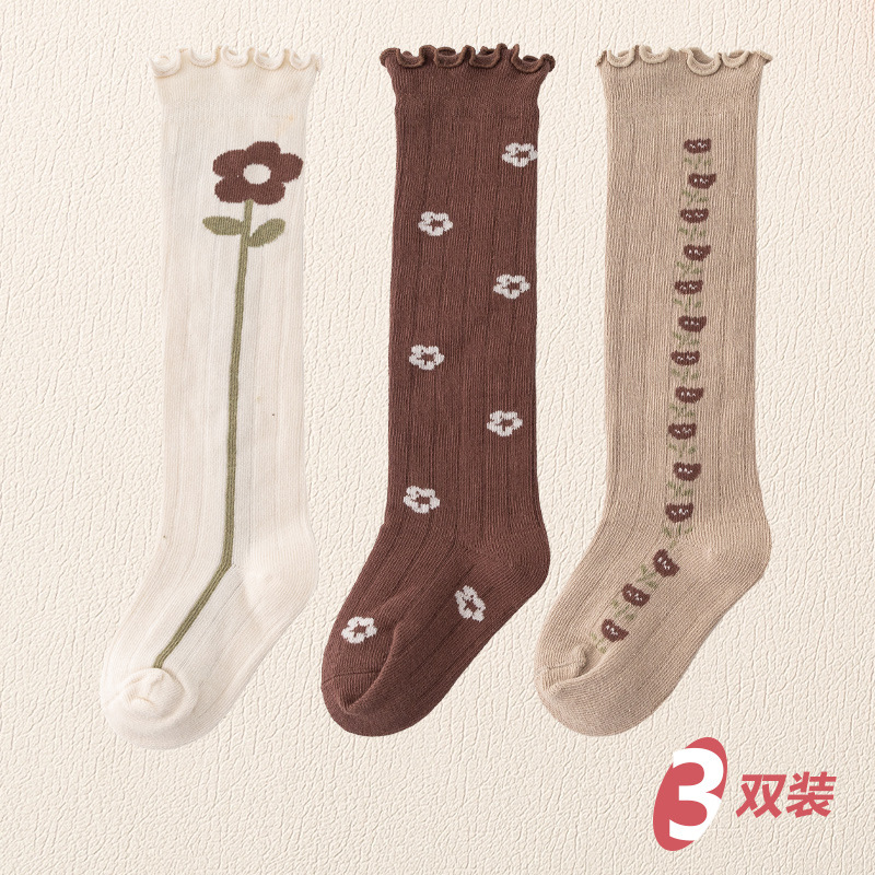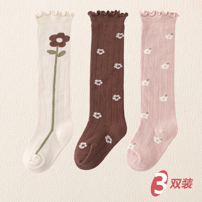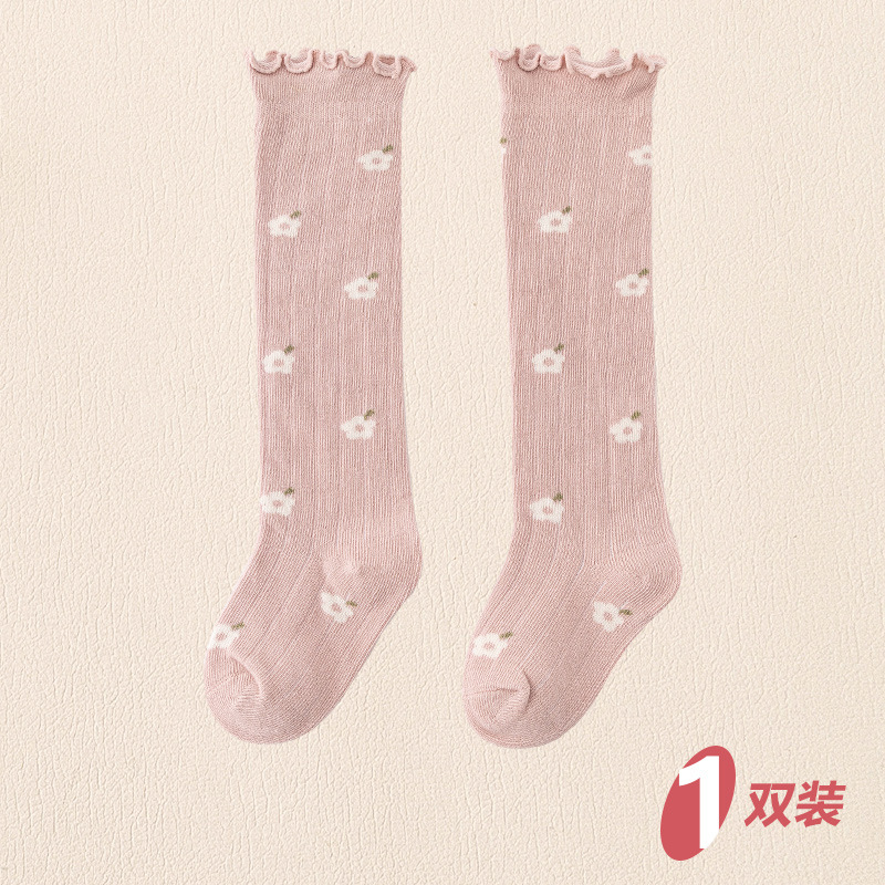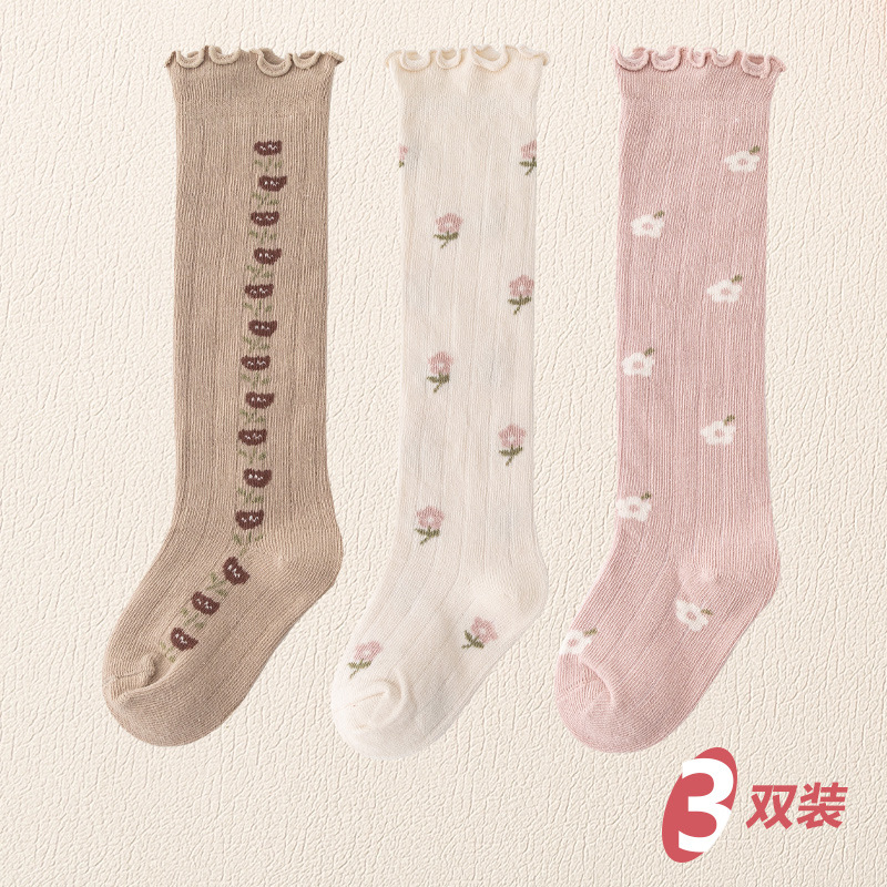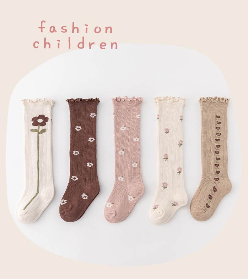 아기 스타킹 봄과 여름 면화 양말 0-6 월 신생아 입 느슨한 높은 튜브 꽃 아기 무릎 양말