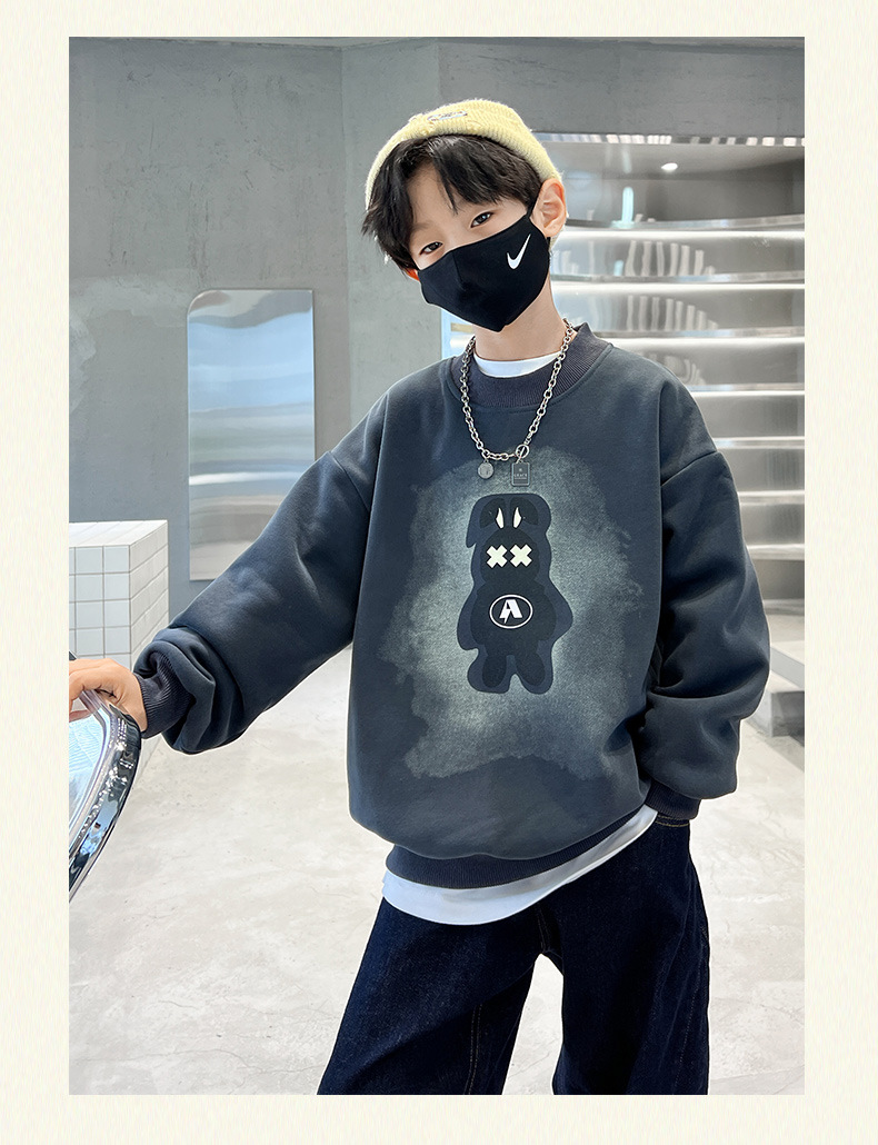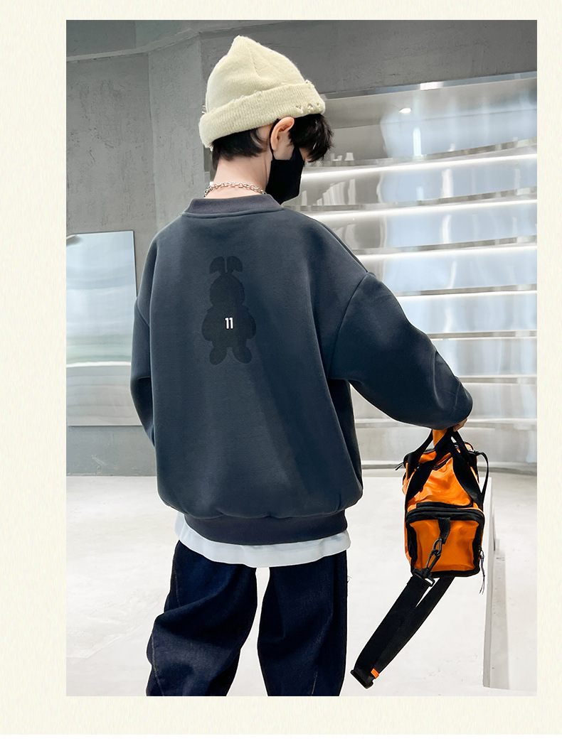 어린이 스웨터 2024 봄과 가을 얇은 느슨한 간단한 최고 중형 및 대형 소년 트렌디 한 싱글 피스 캐주얼 스웨터 긴 소매 T