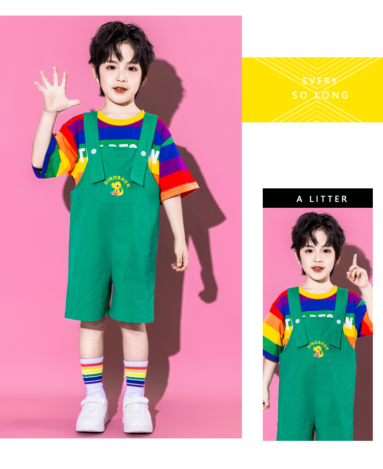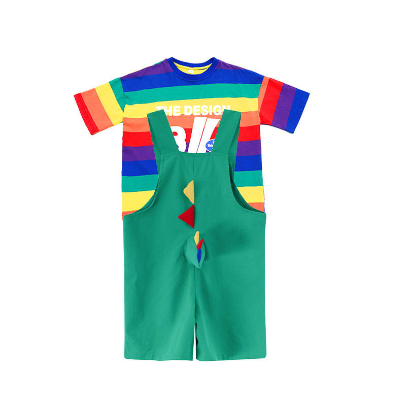 • A18 무지개 반팔 + A430 녹색 서스펜더 바지