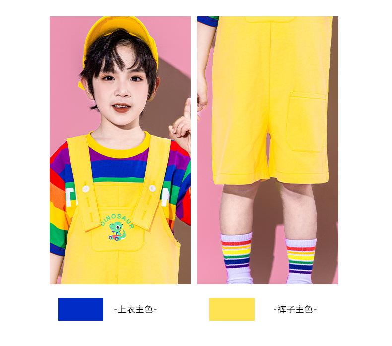 • A18 무지개 반팔 + A430 노란색 서스펜더 바지