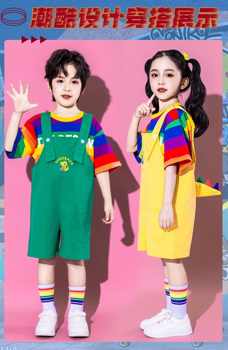 초등학교 학생 스포츠 의류 개회식 무지개 세트 축제 공연 의류 봄 어린이 치어 리더 공연 의류스토어 가기