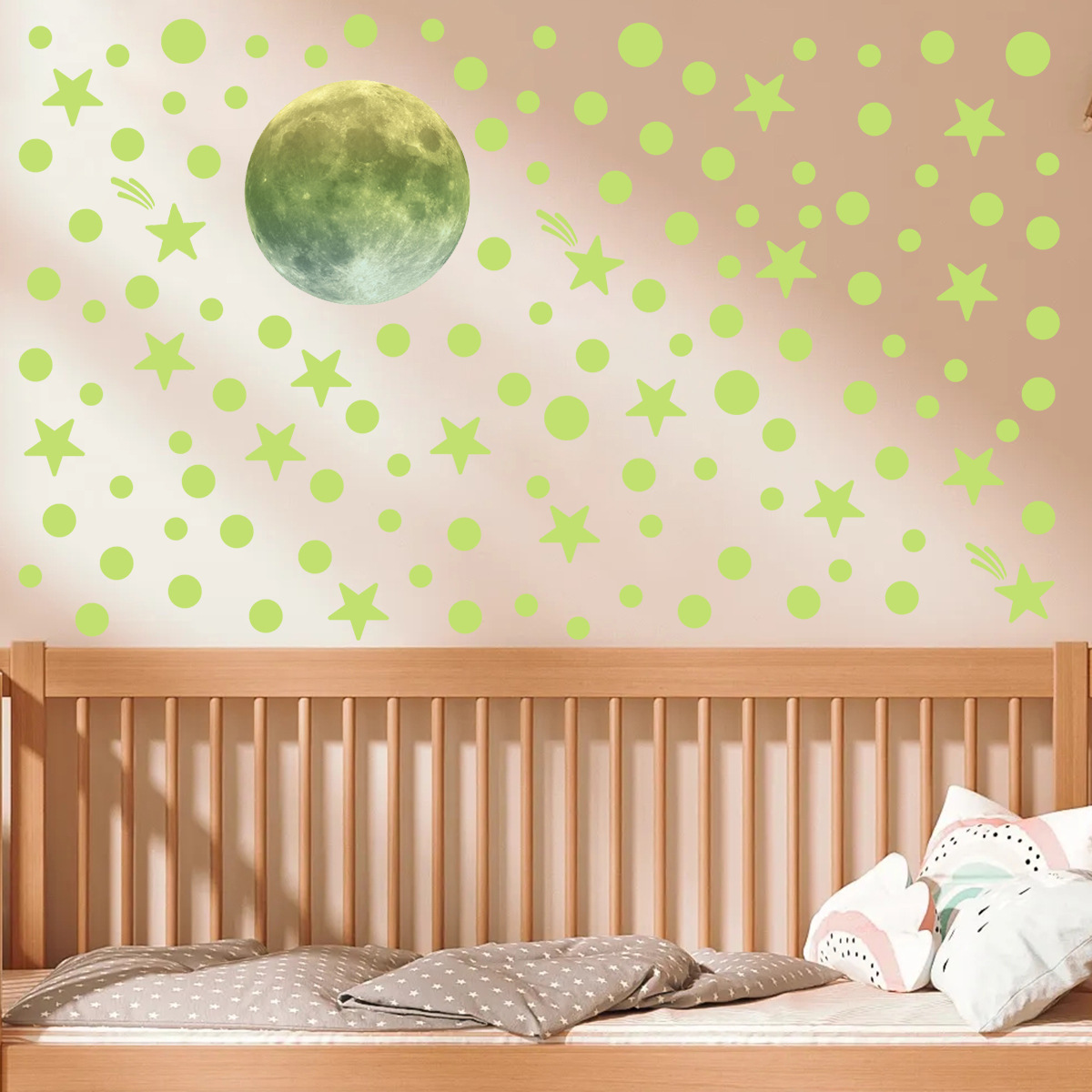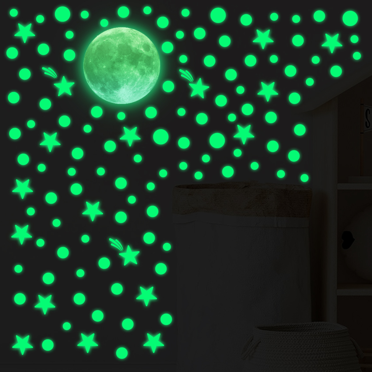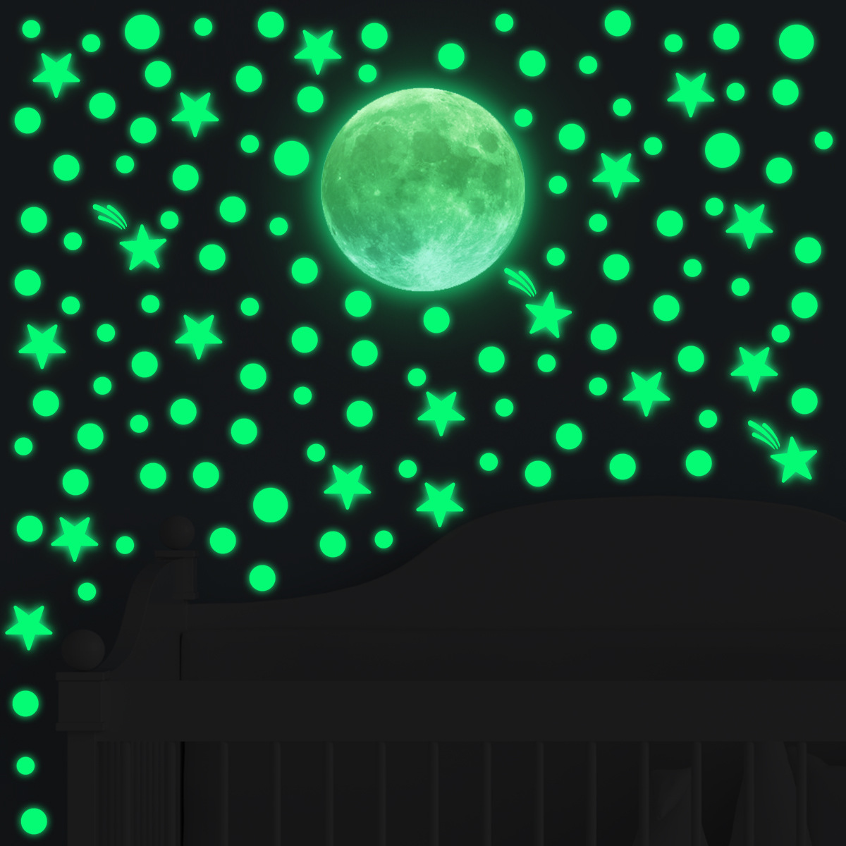 YG7053 빛나는 벽 스티커 별이 빛나는 하늘 달 장식 스티커 레이아웃 방 배경 벽 자기 접착 diy 형광 벽 스티커스토어 가기