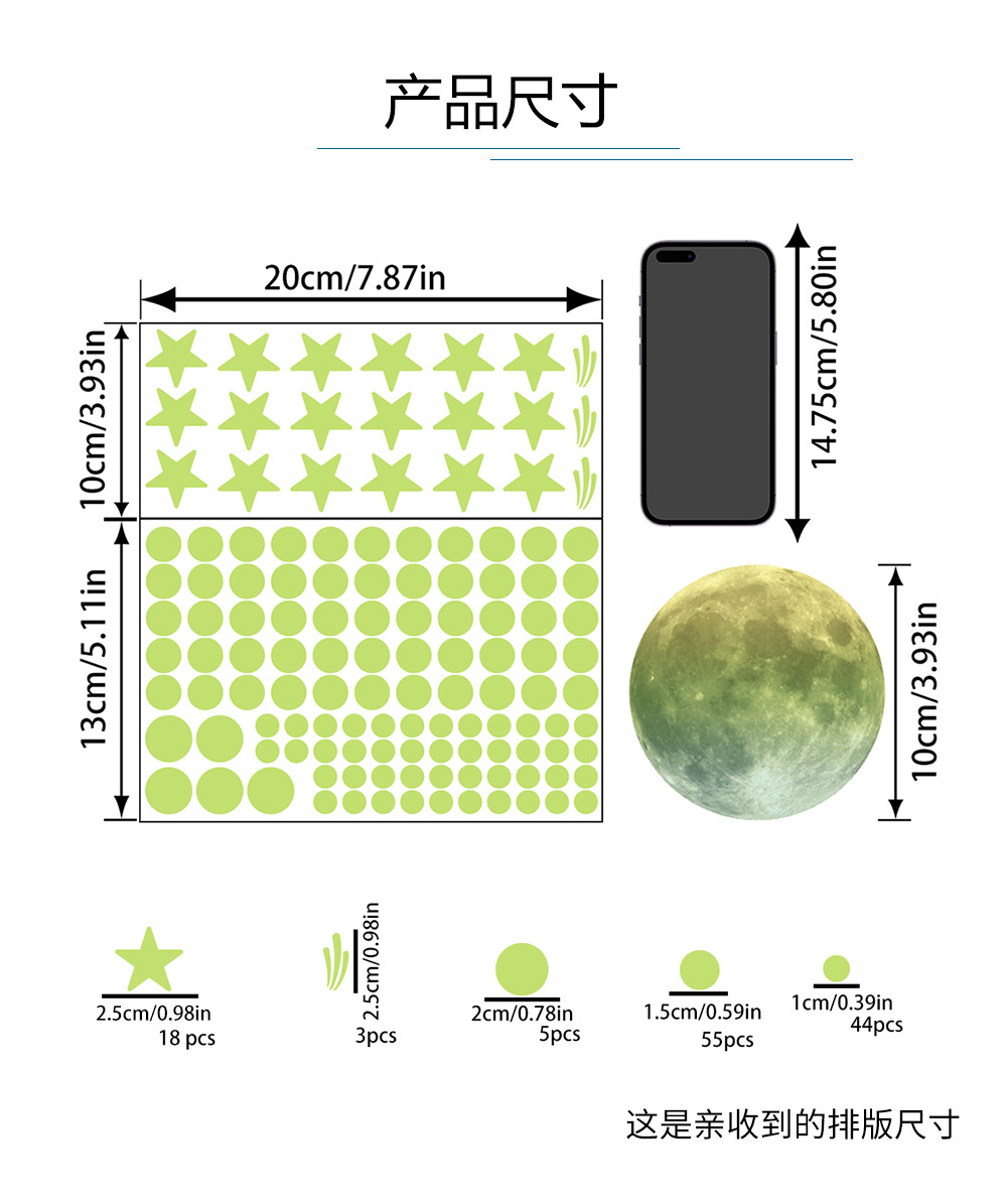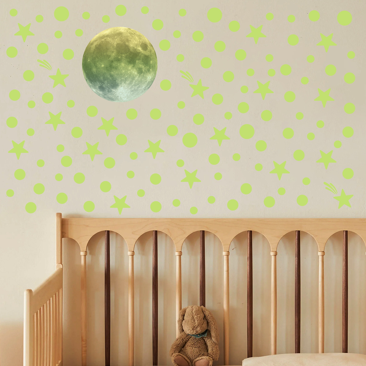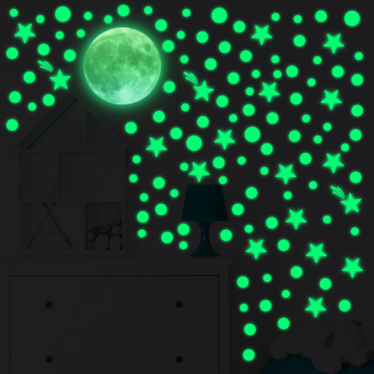 YG7053 빛나는 벽 스티커 별이 빛나는 하늘 달 장식 스티커 레이아웃 방 배경 벽 자기 접착 diy 형광 벽 스티커스토어 가기