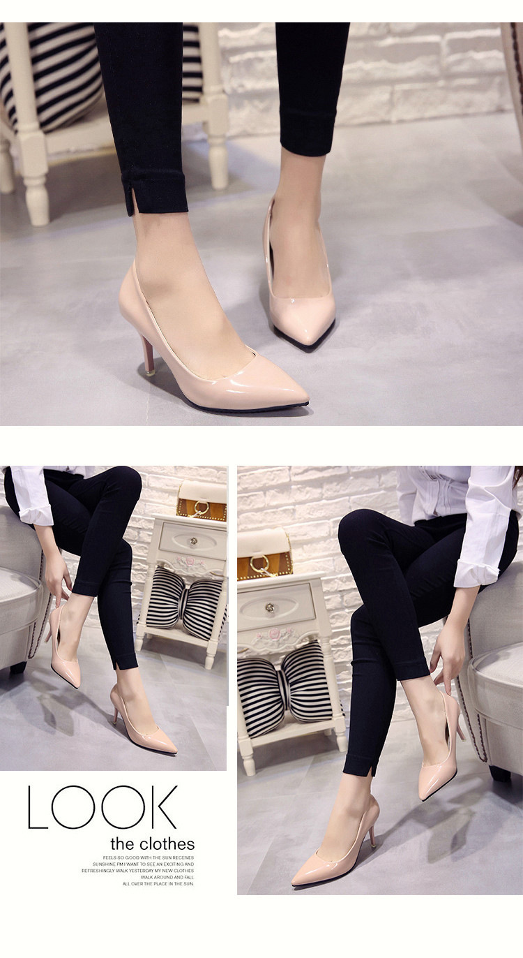 유럽 역 누드 스틸레토 힐 뾰족한 검은 색 작업 신발 여성 특허 가죽 블루 대형 신발 레드 웨딩 신발스토어 가기