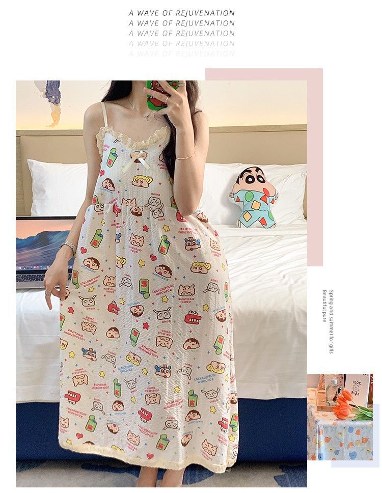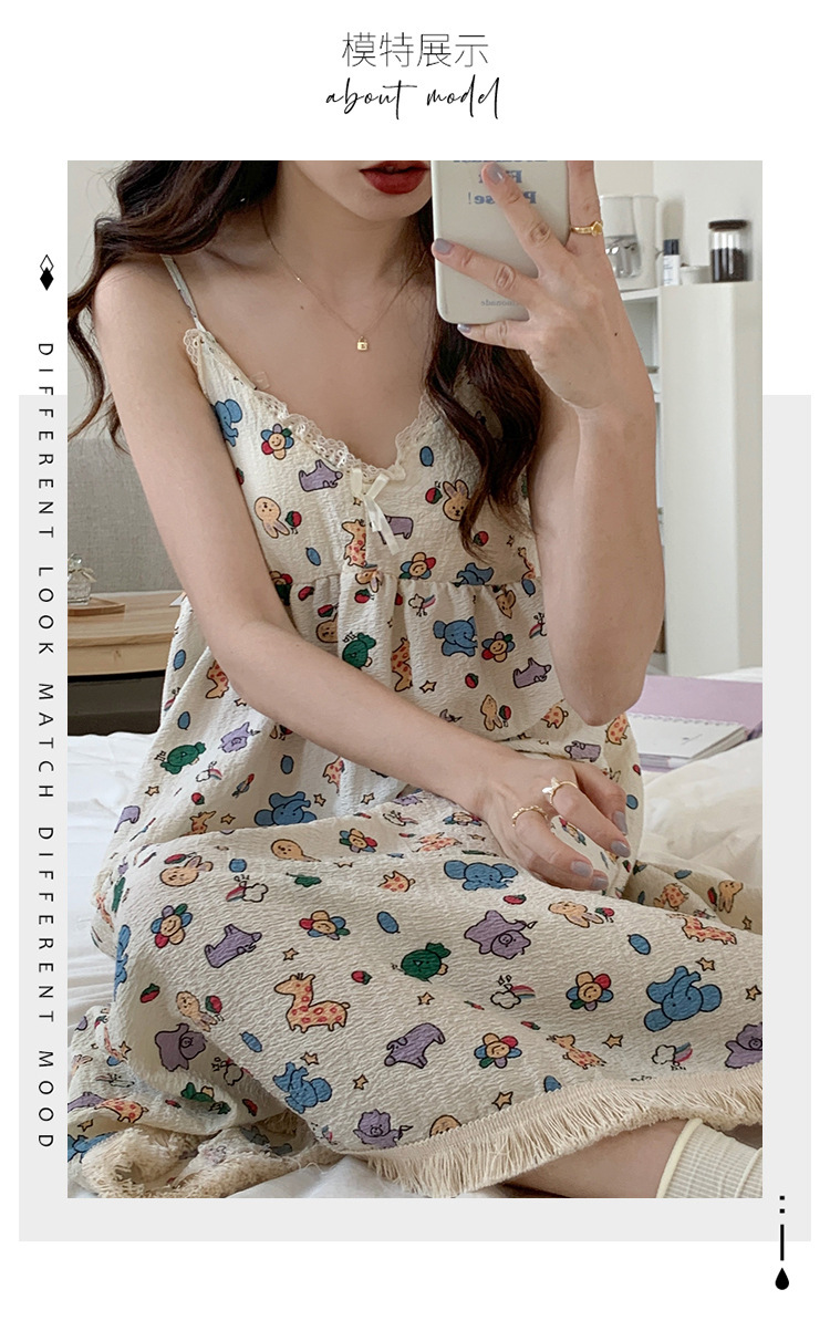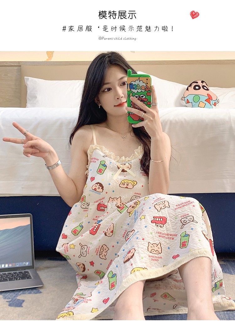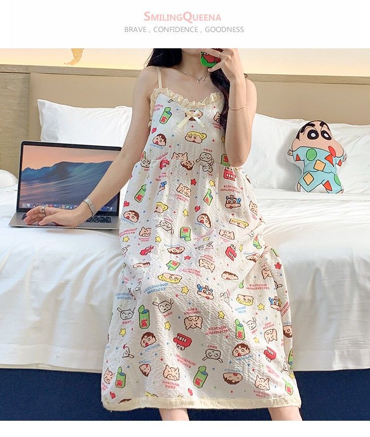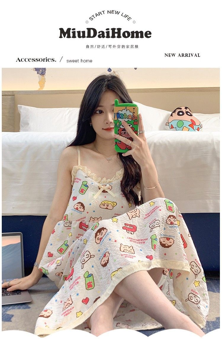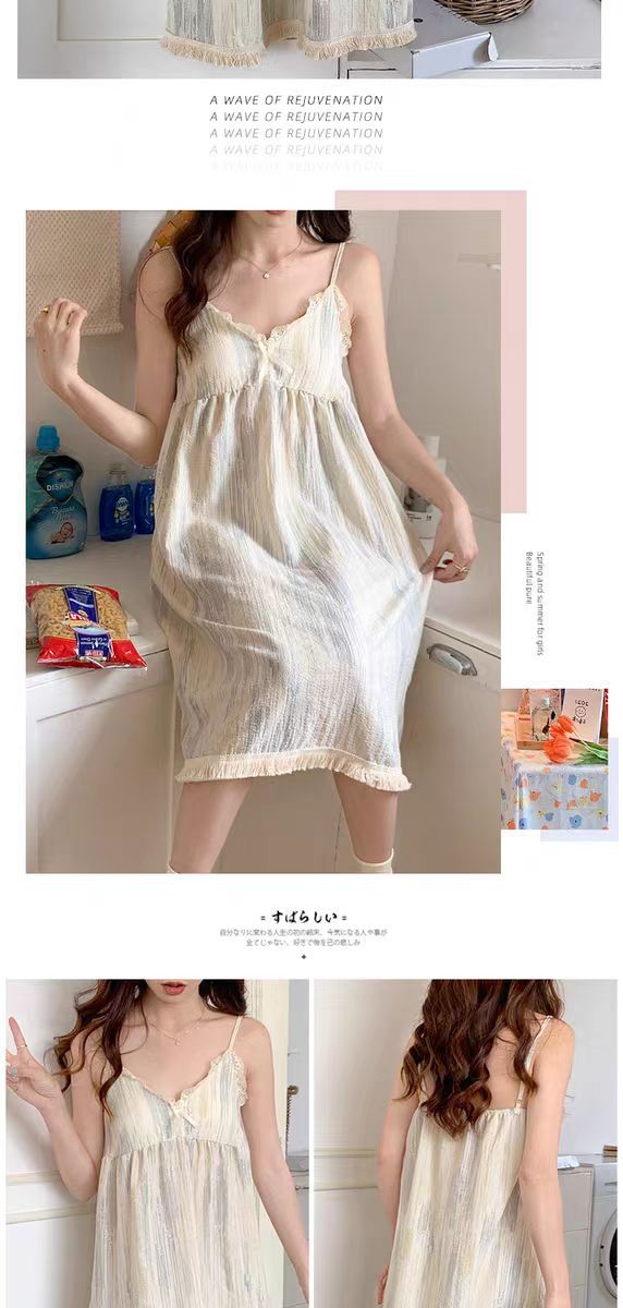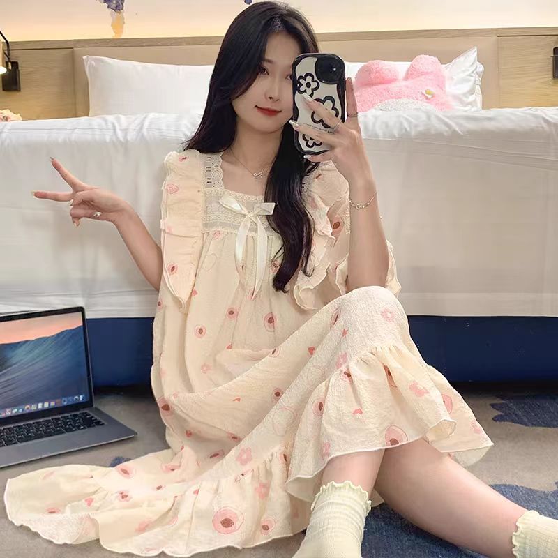 여성 슬립 온 나이트 드레스 가슴 패드 분리 가능한 버블 코튼 파자마 여성의 느슨한 달콤한 귀여운 홈웨어 여름 인기 스타일스토어 가기