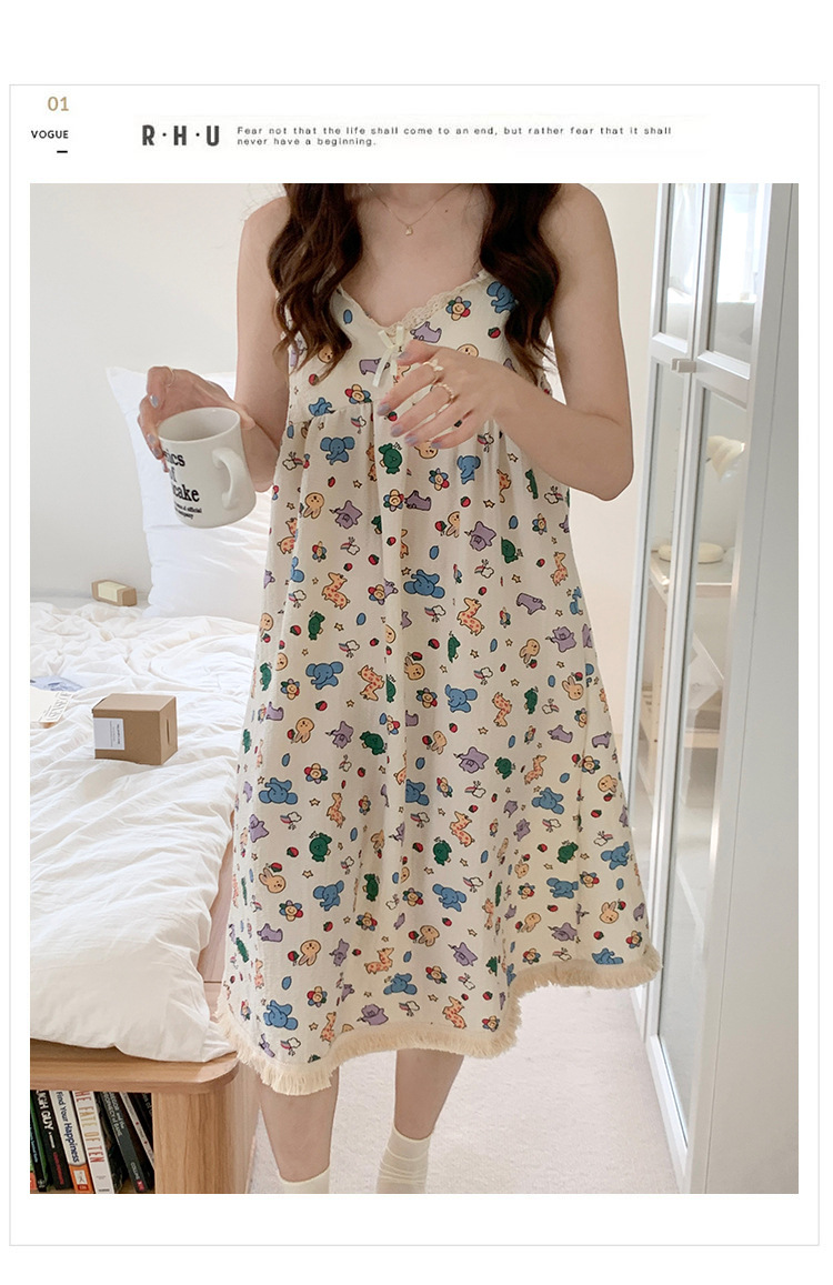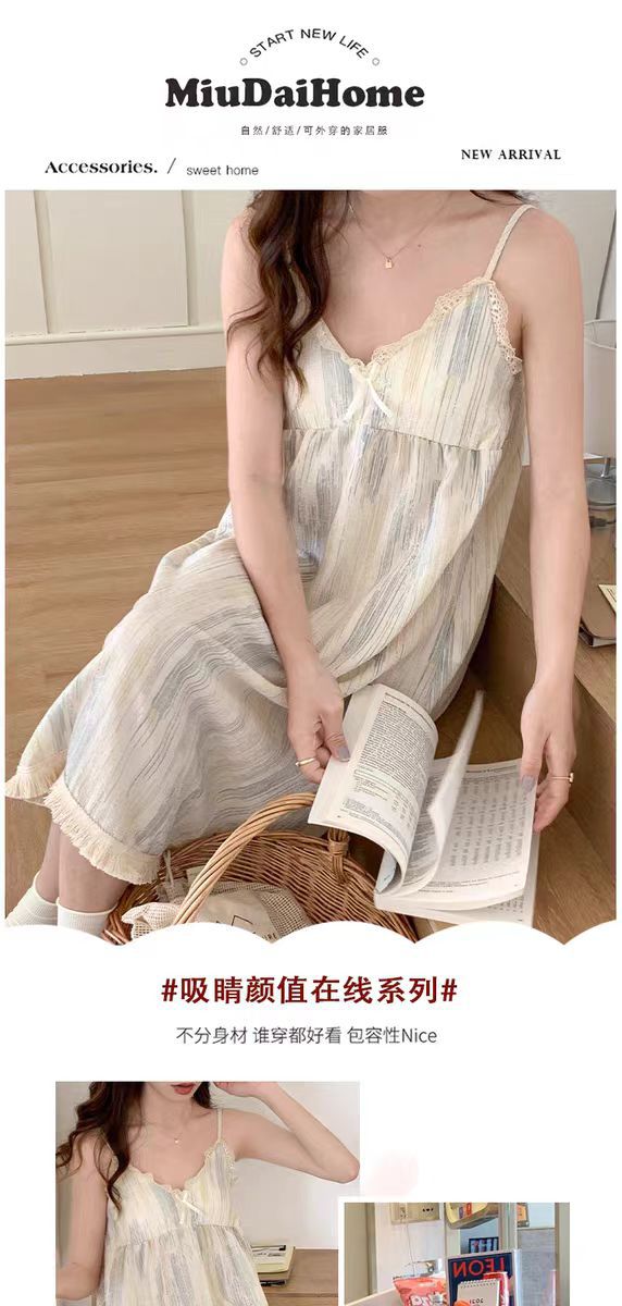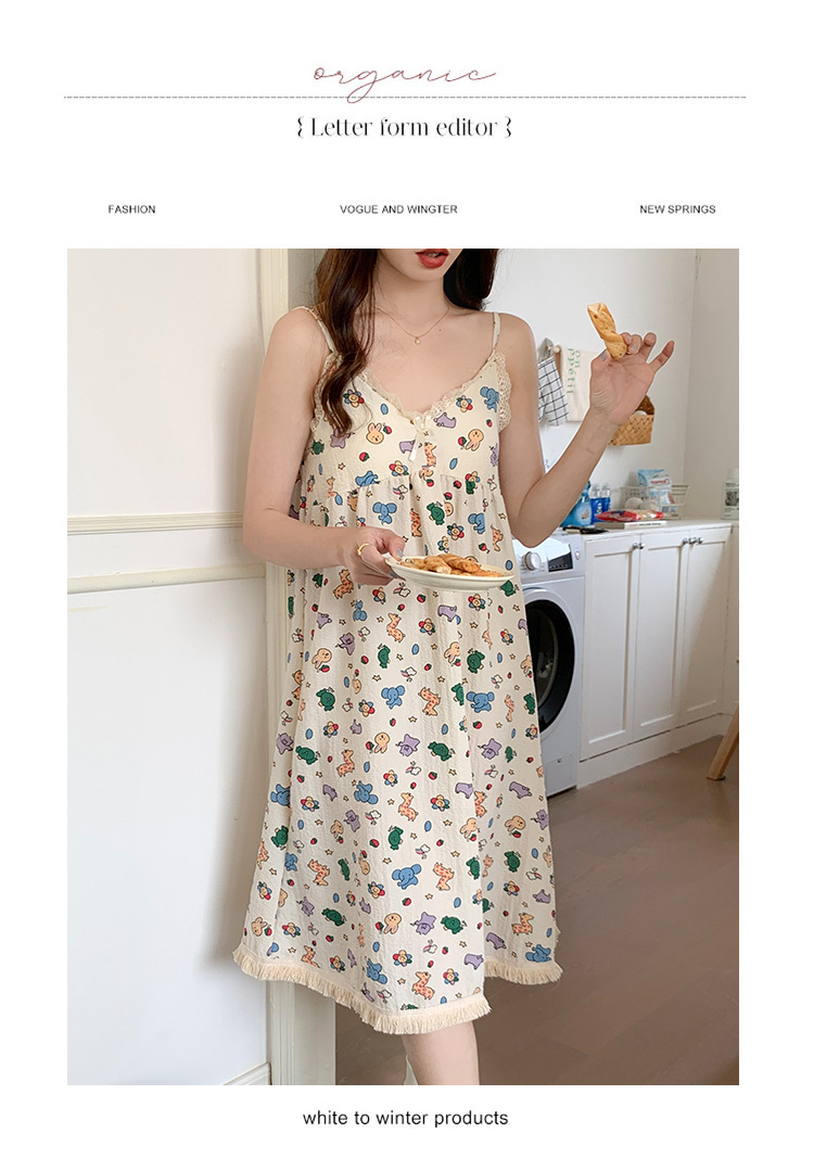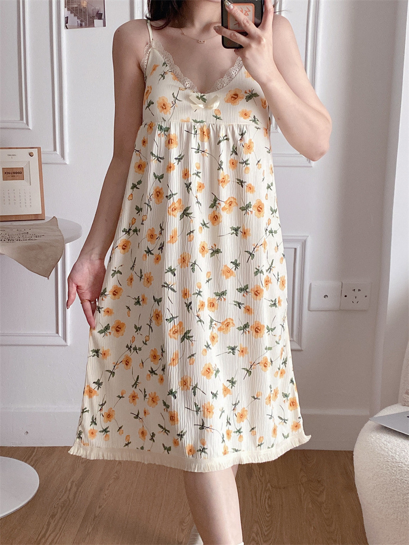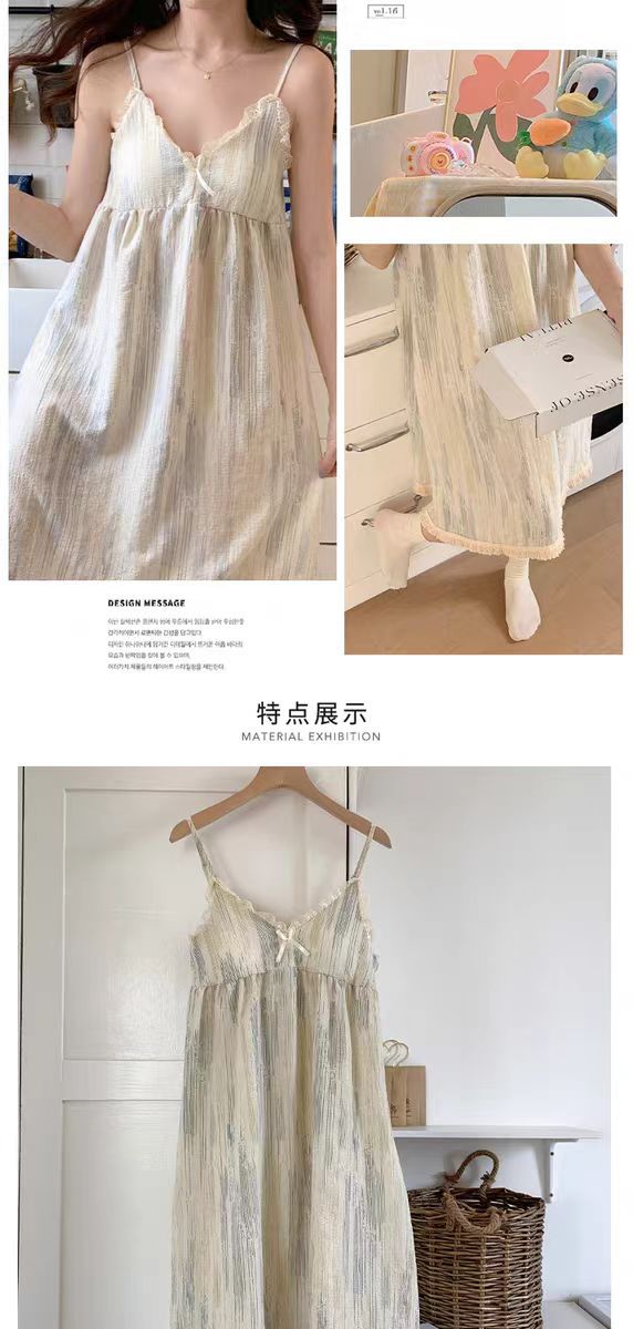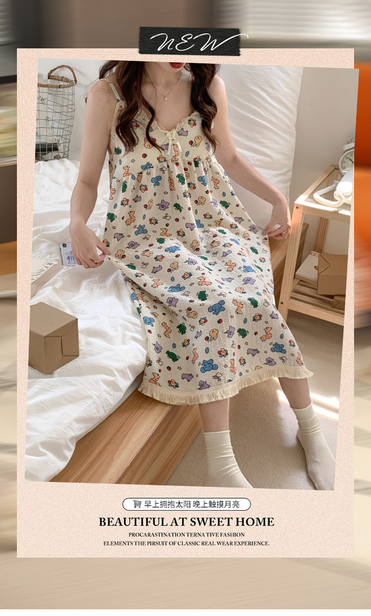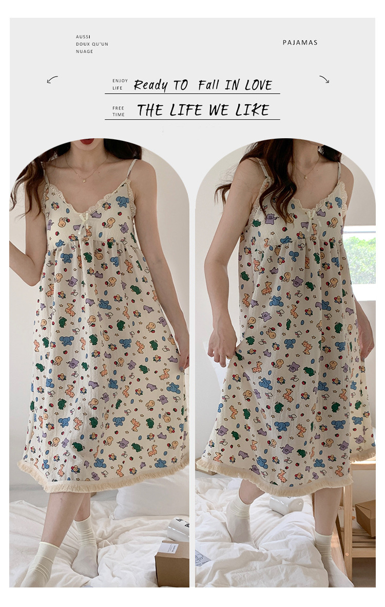 여성 슬립 온 나이트 드레스 가슴 패드 분리 가능한 버블 코튼 파자마 여성의 느슨한 달콤한 귀여운 홈웨어 여름 인기 스타일스토어 가기